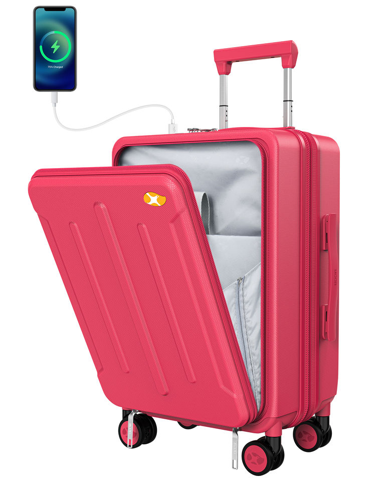Valise MGB moderne à roulettes, légère, ouverture frontale, 20 pouces, avec port USB, extensible, coque rigide en PC, pour cabine, aéroport, affaires
