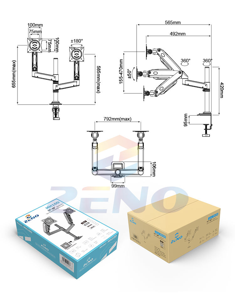 MH10D-Support double pour moniteur RGB, pour ordinateur, 2 moniteurs