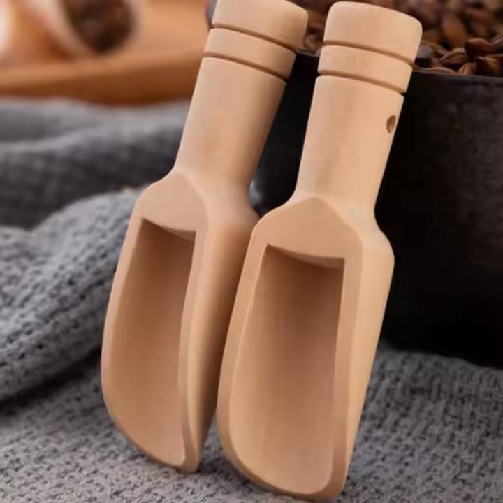 MHK95 Petites cuillères à café en bambou écologiques de style américain, mini-cuillères de mesure plates pour bonbons, café et sels de bain