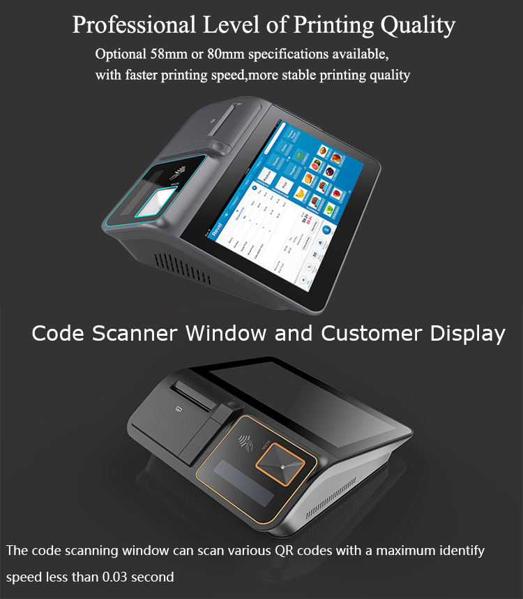 Terminal avec scanner et imprimante:58/80mm thermique réception imprimante
