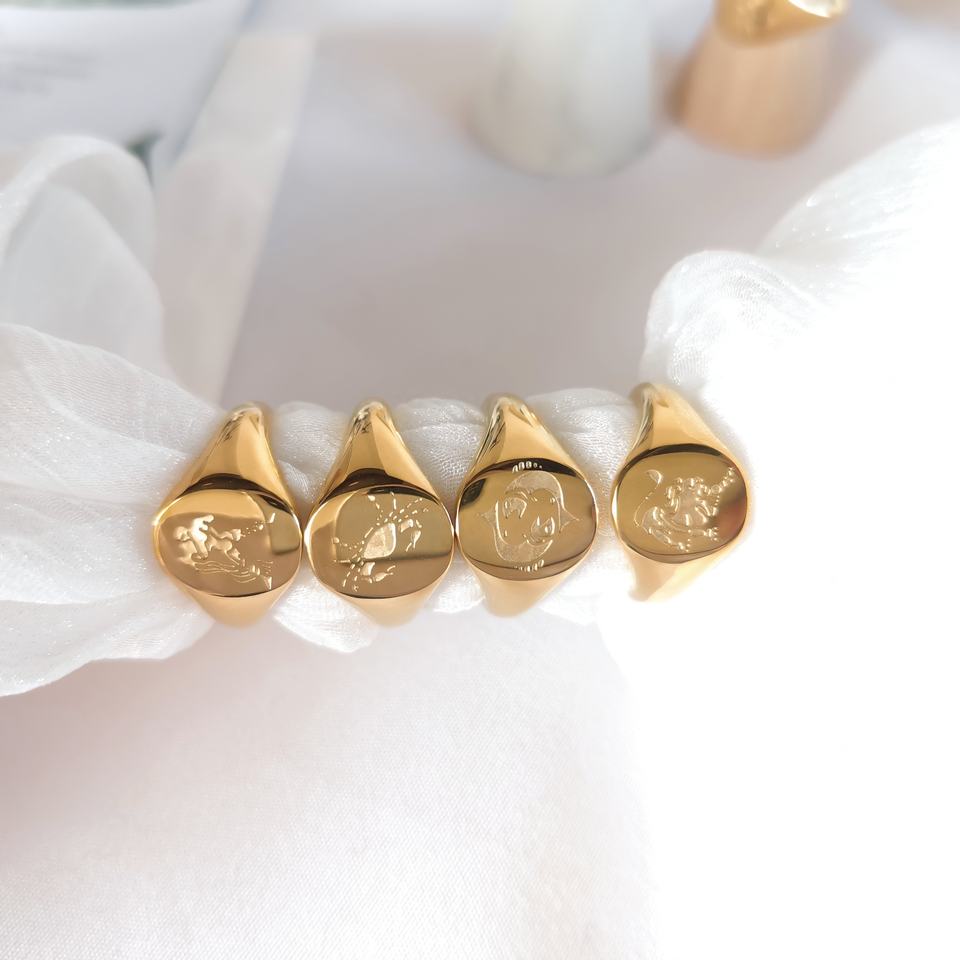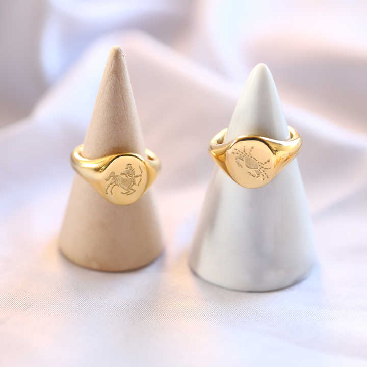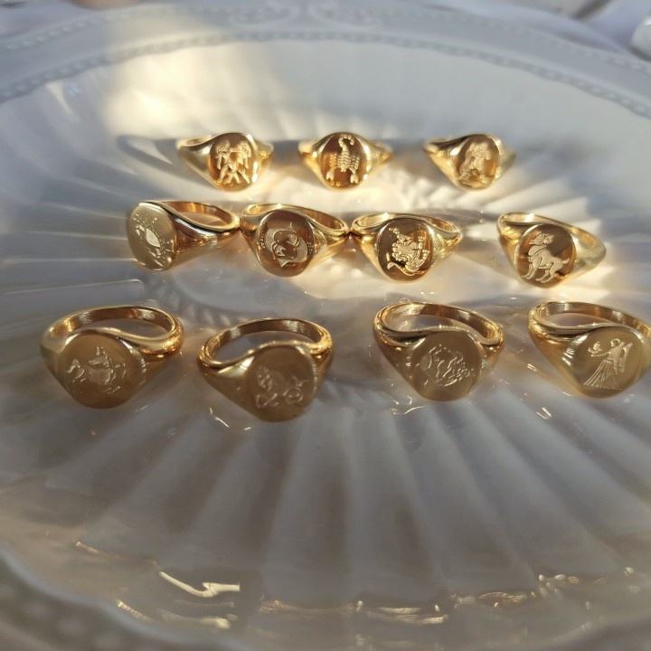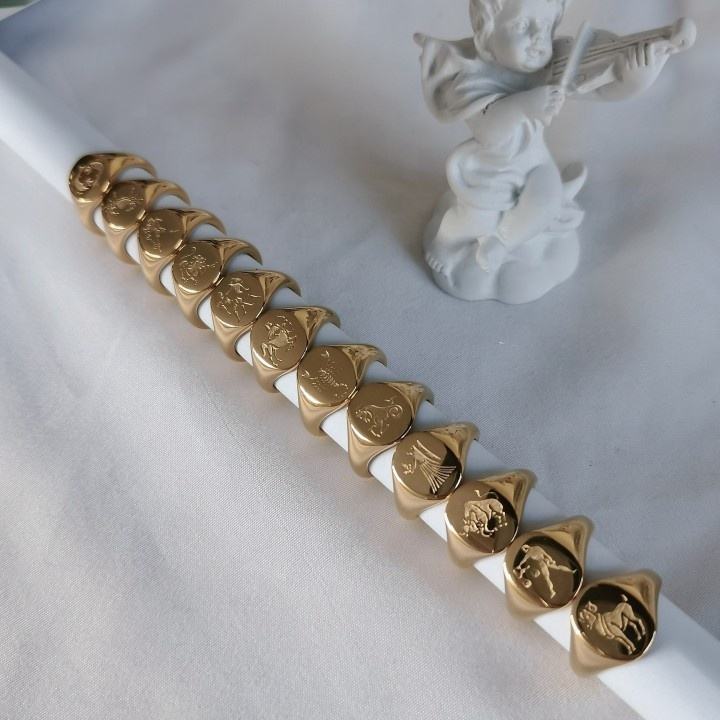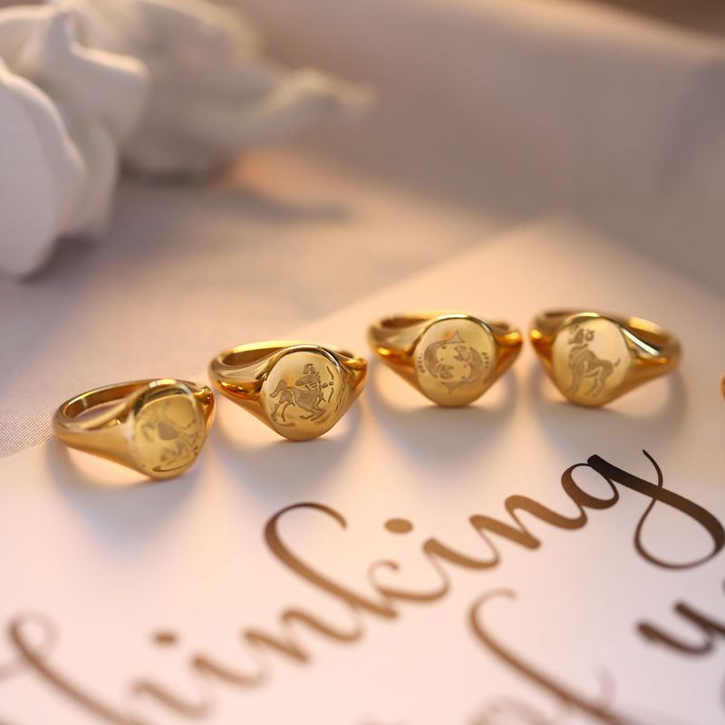 MICCI – bijoux sans ternissement, plaqué or 18 carats, en acier inoxydable, Horoscope gravé, étoile, signe du zodiaque, chevalière