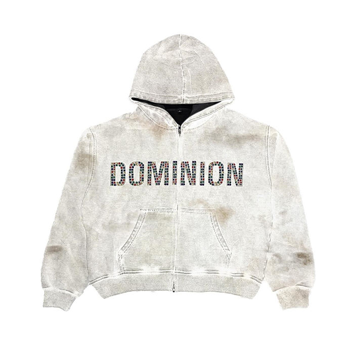 MICHI Sweat à capuche d'hiver pour homme, coupe classique, 100% coton, avec fermeture éclair et strass en cristal, délavage vintage, effet soleil éclairé, grammage lourd 400 g/m²