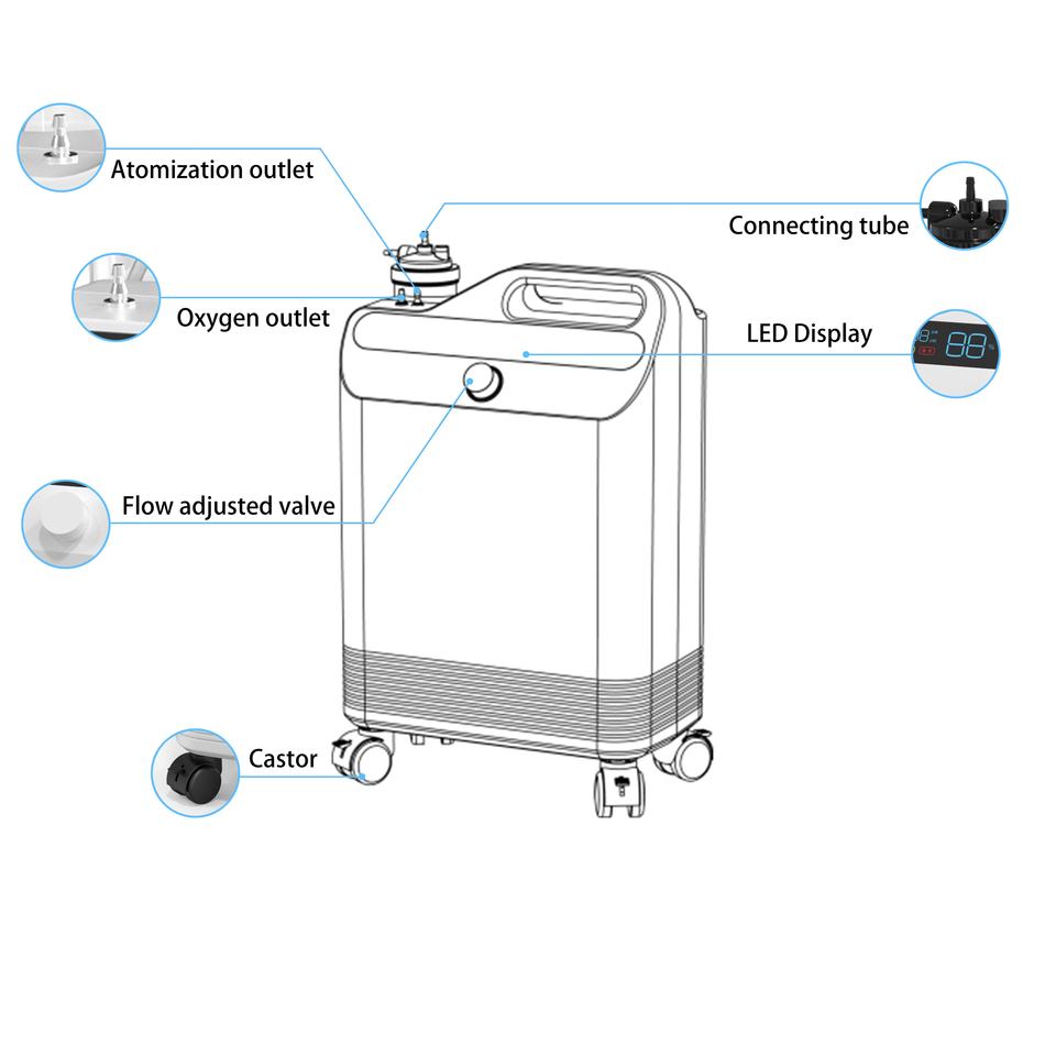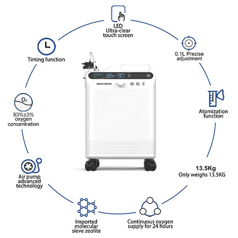 MICiTECH Chine Fabrication de concentrateur d'oxygène portable pour la maison Concentrateur d'oxygène 5 Lpm 5 Litres 5l Concentrateur d'oxygène