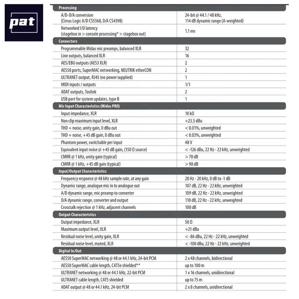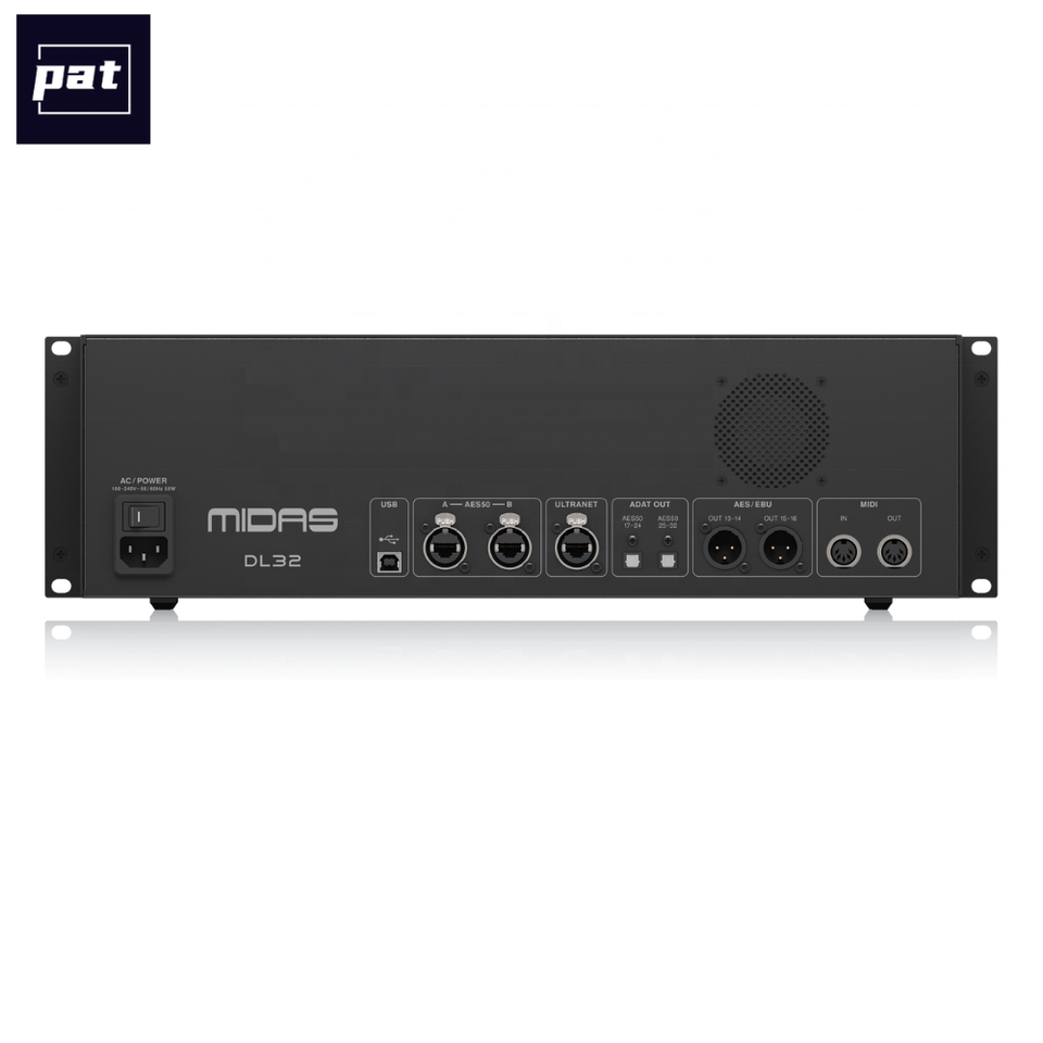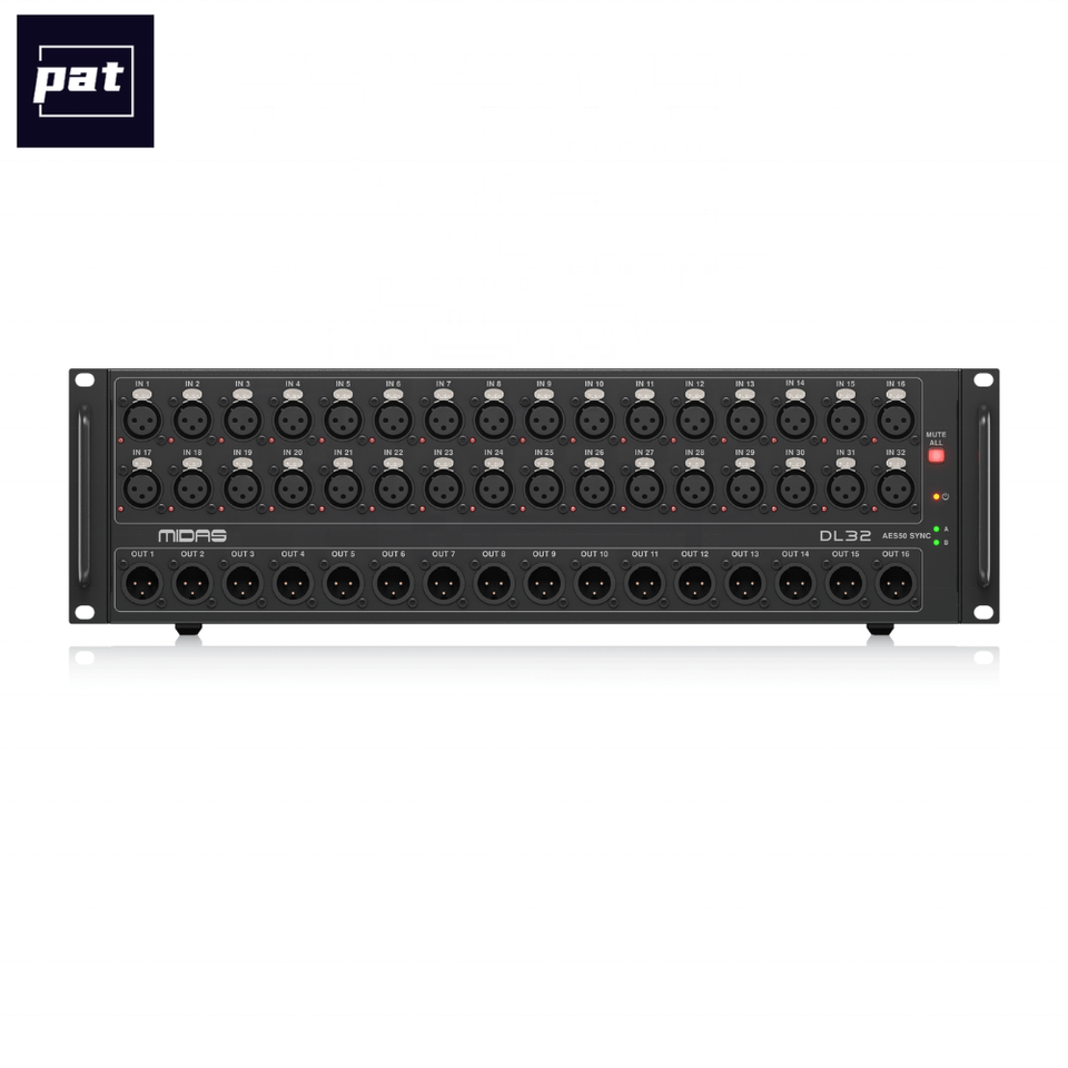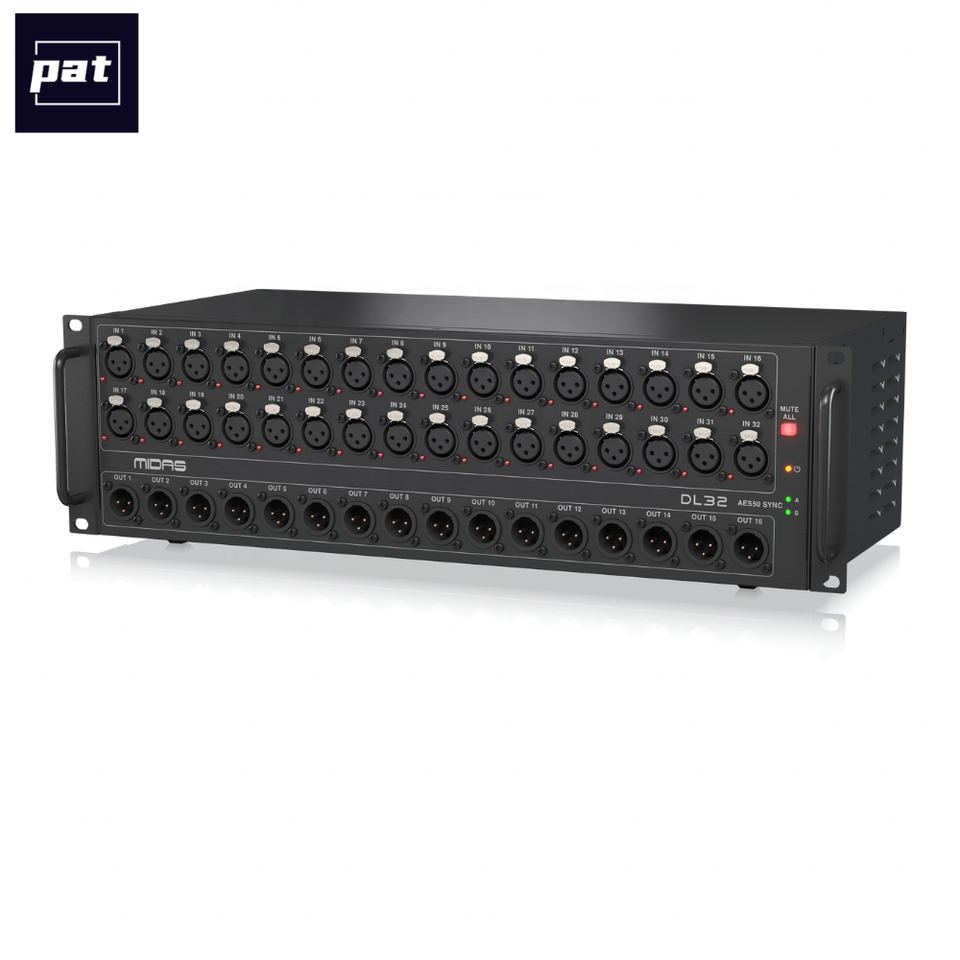Boîtier de scène MIDAS DL32 avec 32 entrées, 16 sorties, 32 préamplis micro Midas, interfaces ULTRANET et ADAT
