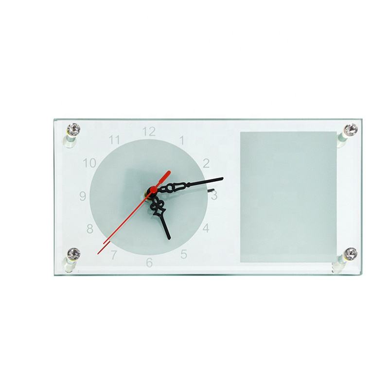 Cadre photo en verre rectangulaire moderne MIDAS avec horloge, épaisseur 0,5 cm, impression par transfert thermique 6 couleurs pour personnalisation