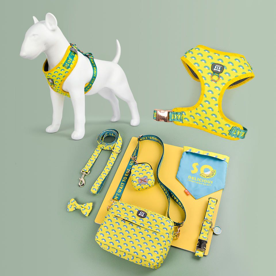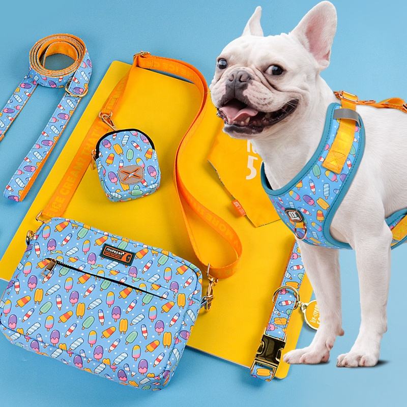 Ensemble harnais pour chien, laisse et distributeur de sacs à déjections canines