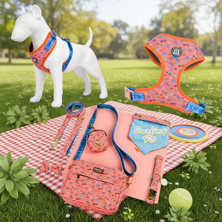 Ensemble harnais pour chien, laisse et distributeur de sacs à déjections canines