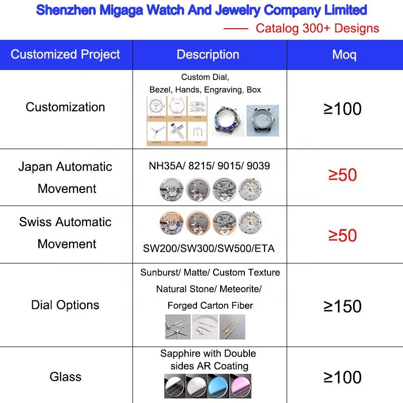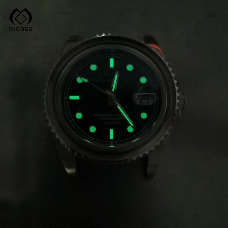 MIGAGA personnalisable or rose cadran ovale affichage analogique fonction lumineuse bracelet de montre de plongée 22mm 5mm montre mécanique pour hommes