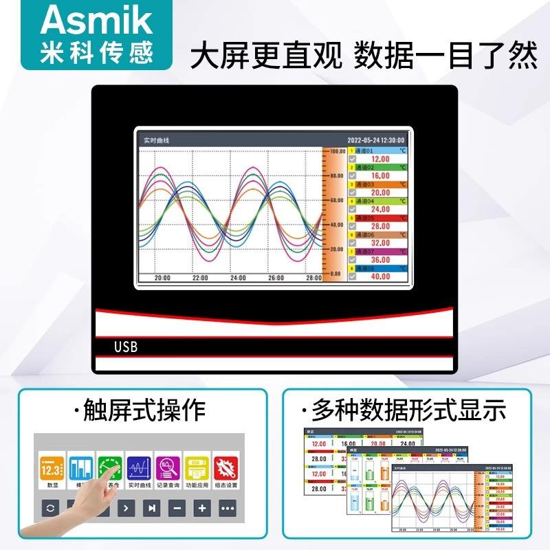 Enregistreur sans papier couleur à écran tactile MIK-RN5000, enregistreur de données multi-canaux de température et de tension RTD, qualité industrielle, interface USB