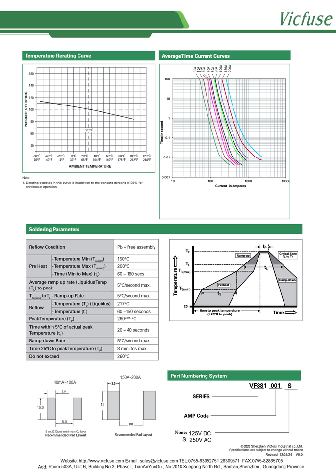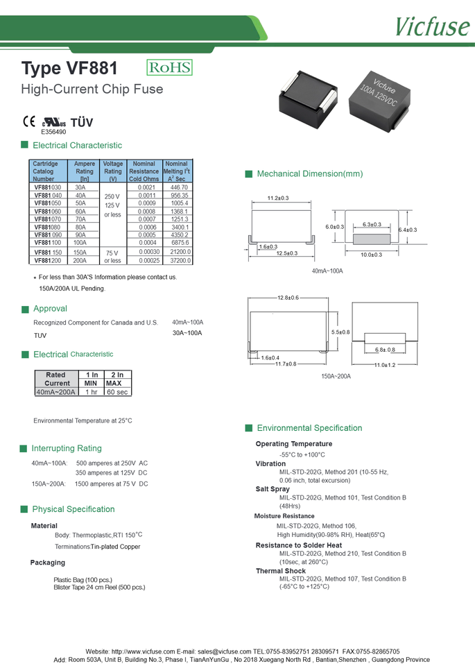 Fusible SMD certifié par MIL-STD VF881 à courant élevé (30A-200A) avec l'emballage de bande et de bobine