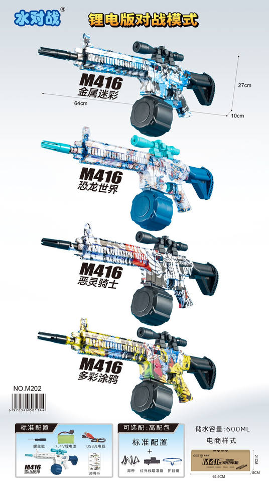 Jouets d'été MILI, pistolets à eau en plastique à piles, pistolets à eau électriques haute pression, super soaker, Agreat M416 P90 AKM47