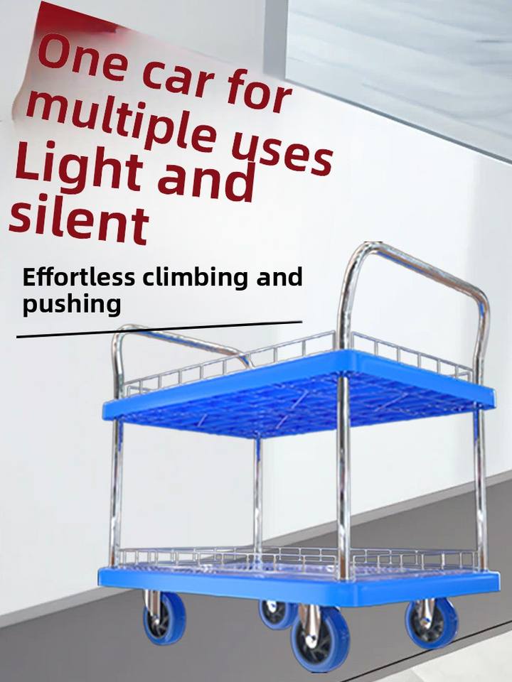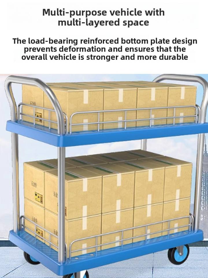 Chariot à plateforme silencieux à double couche MILLMISS, poussé à la main, pour le transport de marchandises en entrepôt, chariot à outils léger à trois niveaux