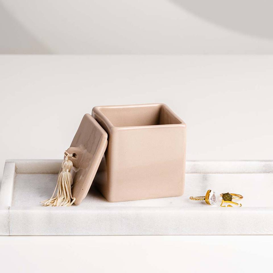 Boîte MINA beige clair 7,5 cm de largeur x 8 cm de hauteur
