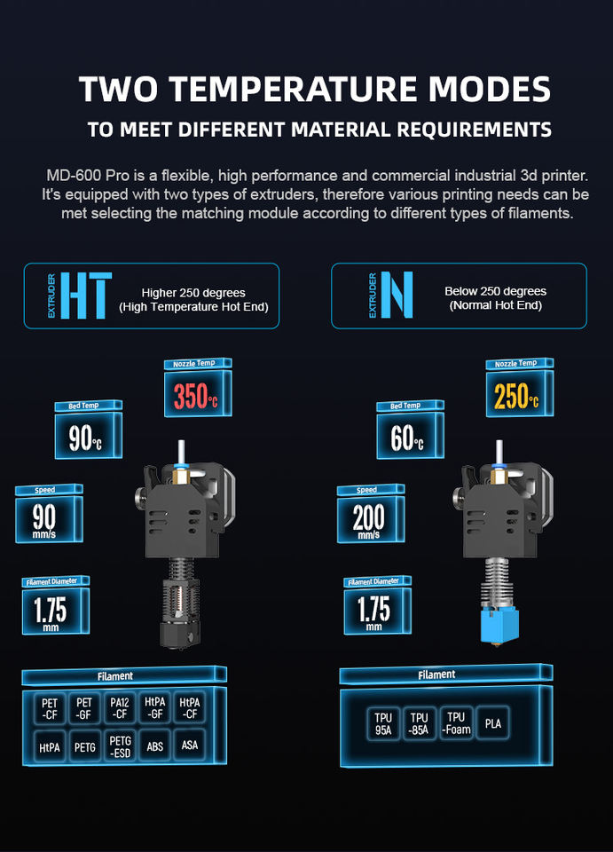Matériel:PETG-ESD/ABS/TPU/TPE/Nylon/PA12/Fibre de carbone/PET-CF etc.