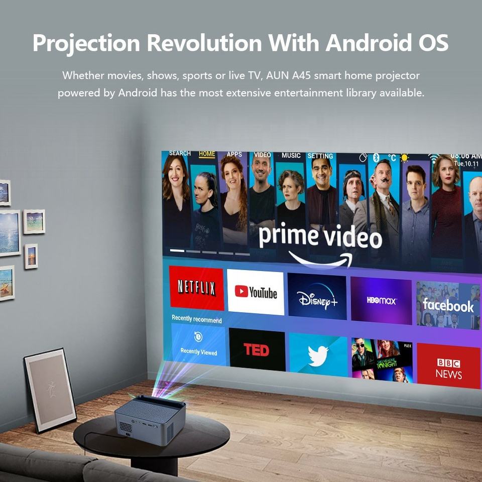 Mini projecteur Android Full HD A45 OEM ODM CE 1080P natif Bluetooth 3D Wifi Dolby Vision Multimédia 2026 RGB Laser Ultra Courte Portée