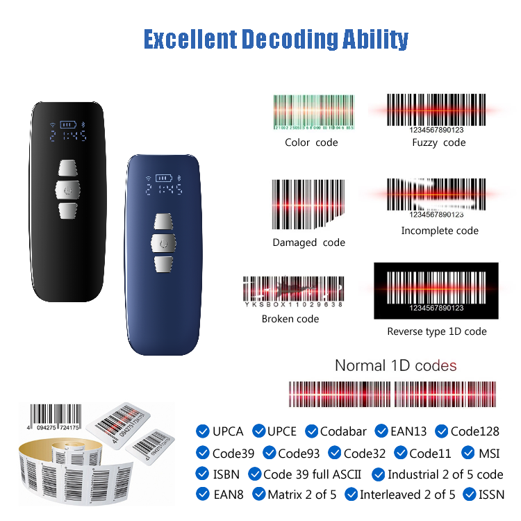 Nom du modèle:YHD-3200CB Scanner de codes-barres sans fil Bluetooth 1D CCD