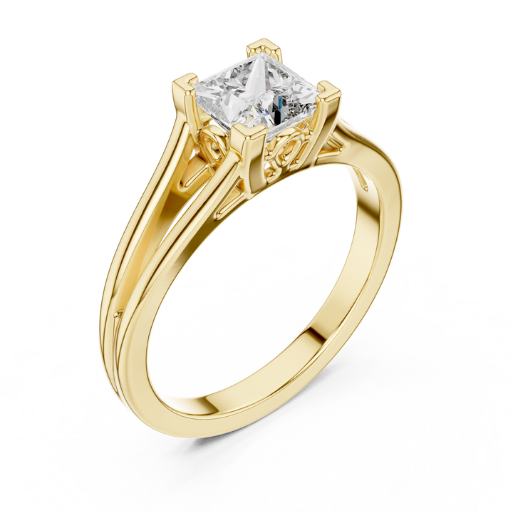 Bague de fiançailles minimaliste en or jaune 18 carats plaqué rhodium avec diamant de laboratoire princesse 1 carat, certifiée IGI, pour la Saint-Valentin