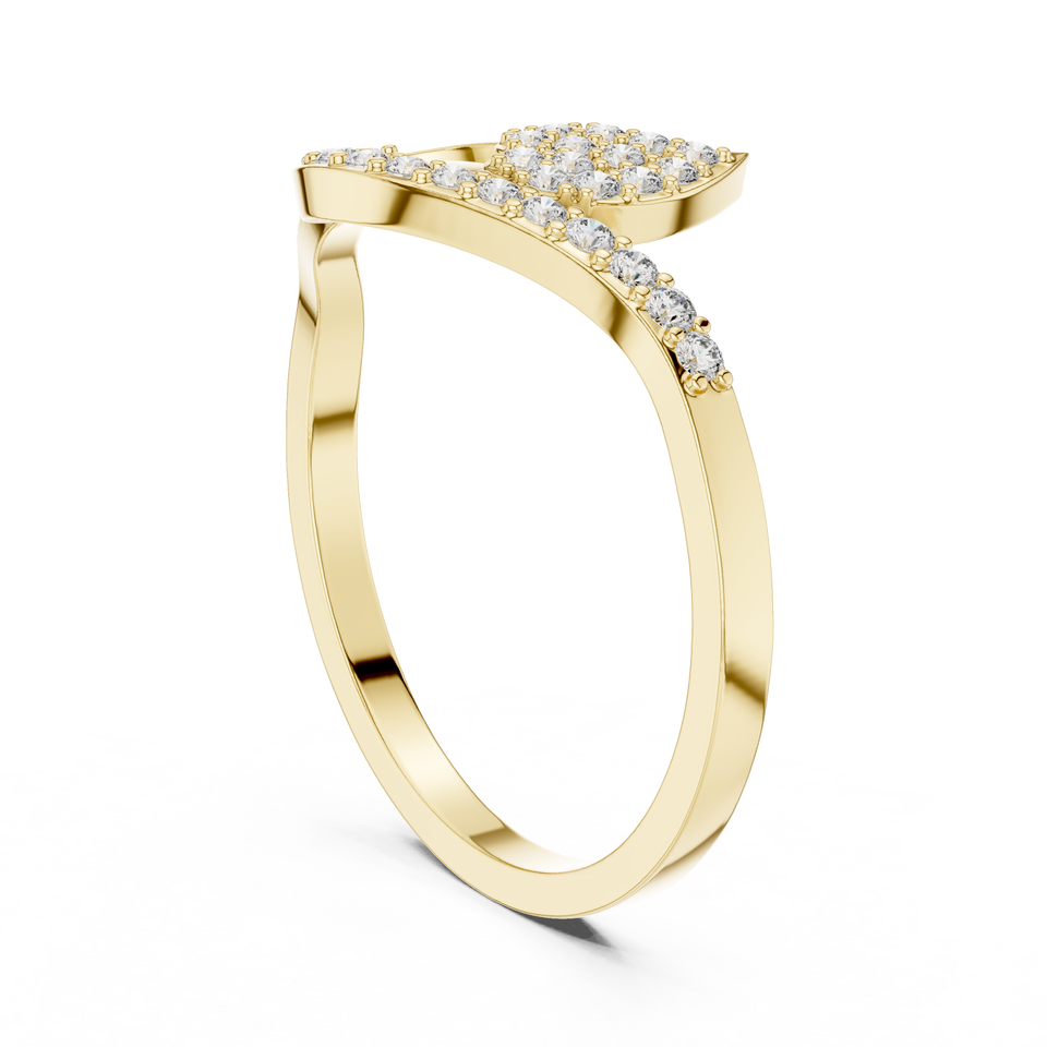 Bague minimaliste en or jaune 18 carats plaqué rhodium avec diamant de laboratoire taillé motif feuille, certifiée, pour fiançailles, mariage, soirée ou usage quotidien