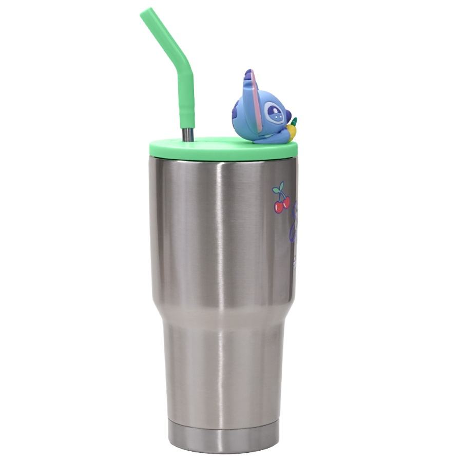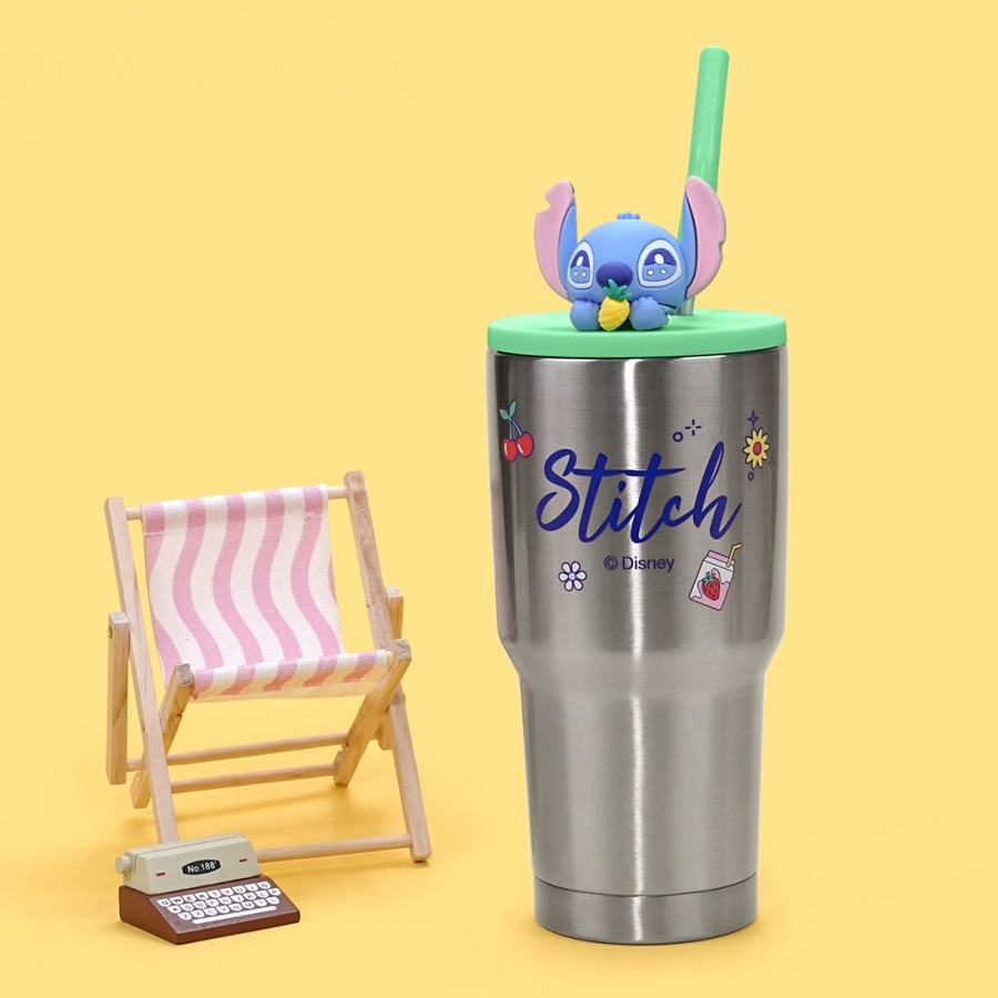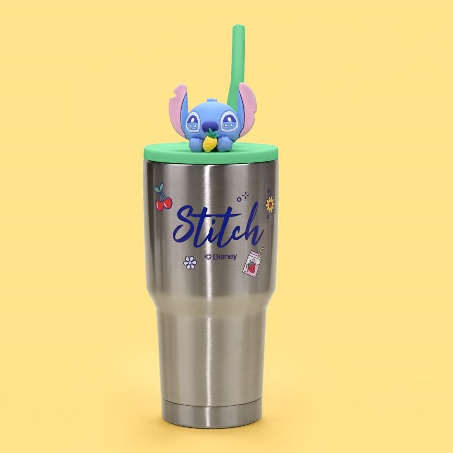 MINISO Water Bottle Disney Stitch Food Party Series 900ml Double-Layer Pineapple Straw Steel Cup Waterproof Stylishly Portable