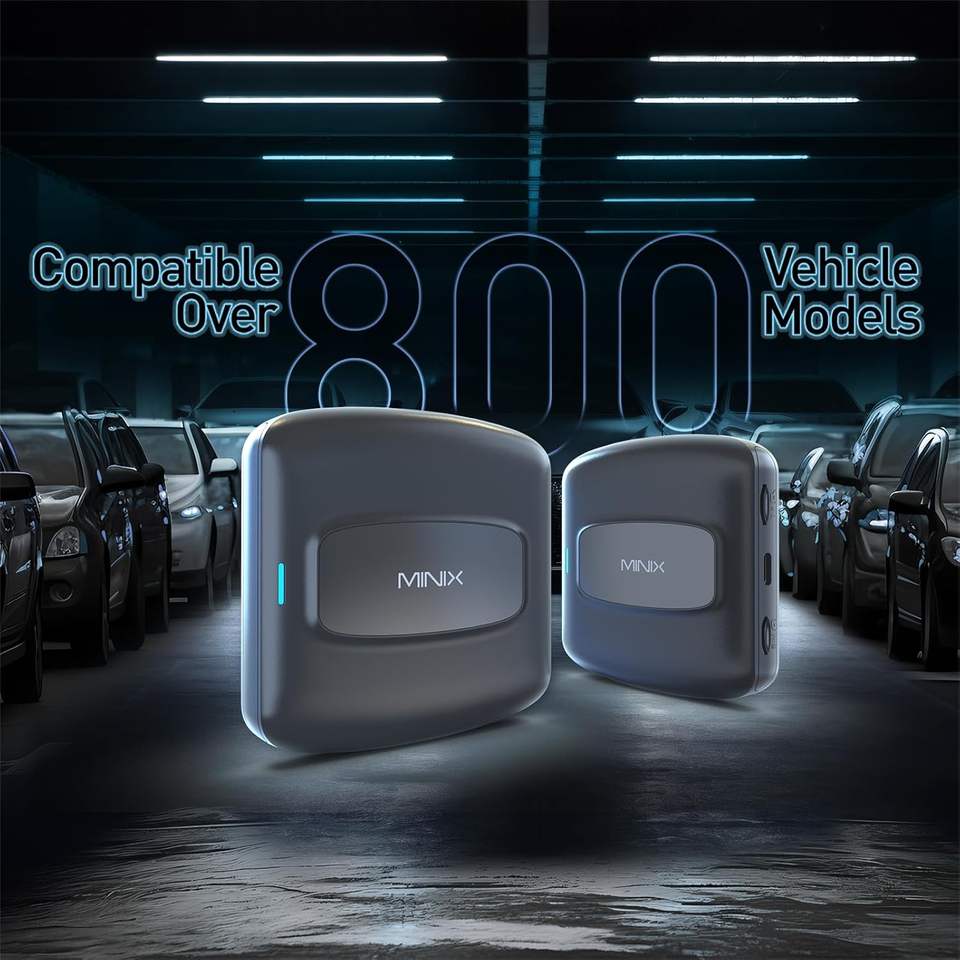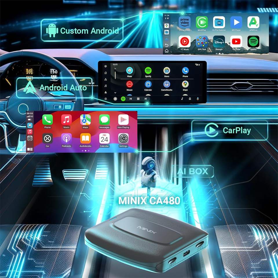 Boîtier Android AI MINIX CarPlay 8 cœurs 8G+128G, CarPlay sans fil, Android Auto, 4G LTE, YouTube 720p, pour carte SIM/TF