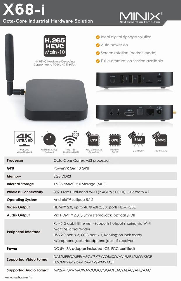 MINIX NEO X68i RK3368 2G 16G Android 5.1 ou Android 6.0 Octa Core Mini ordinateurs industriels de PC portable boîte de TÉLÉVISION intelligente MINIX X68i