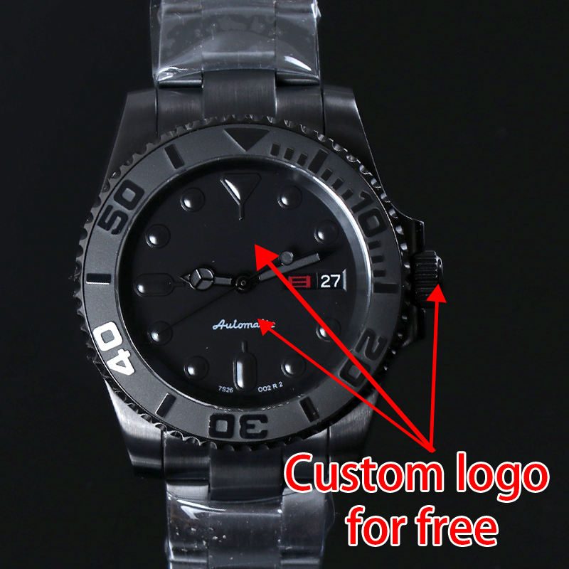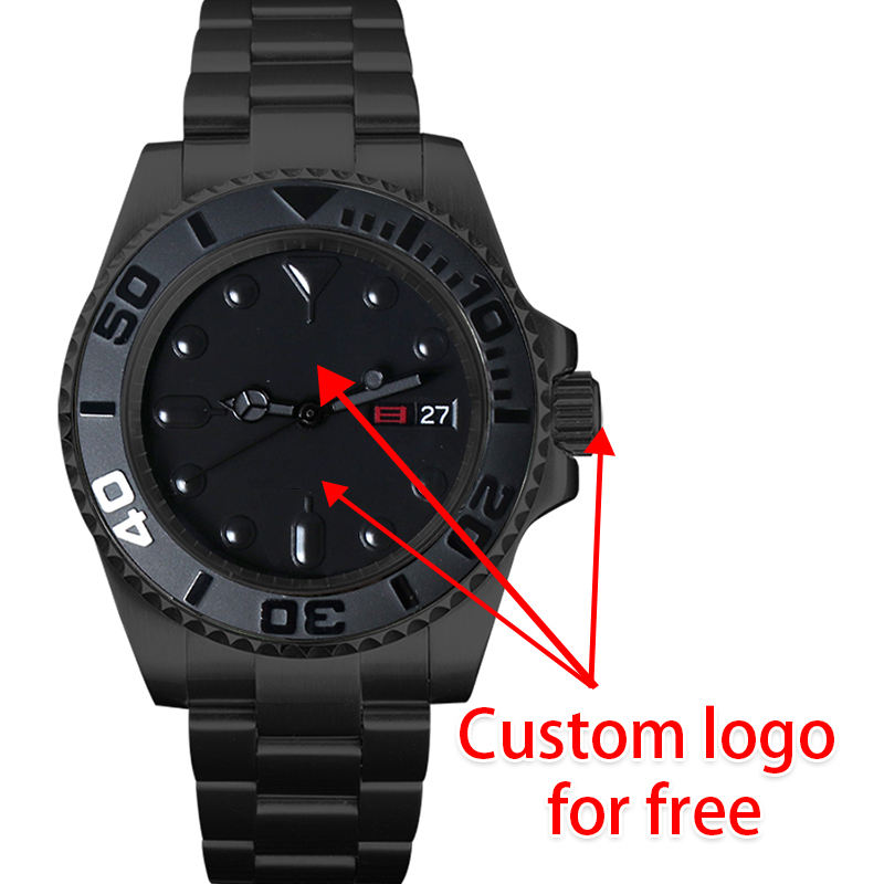 Montre automatique personnalisée MINUTETIME 40 mm, mouvement vintage NH36, acier, étanche, avec affichage du jour, date noire complète, pour homme