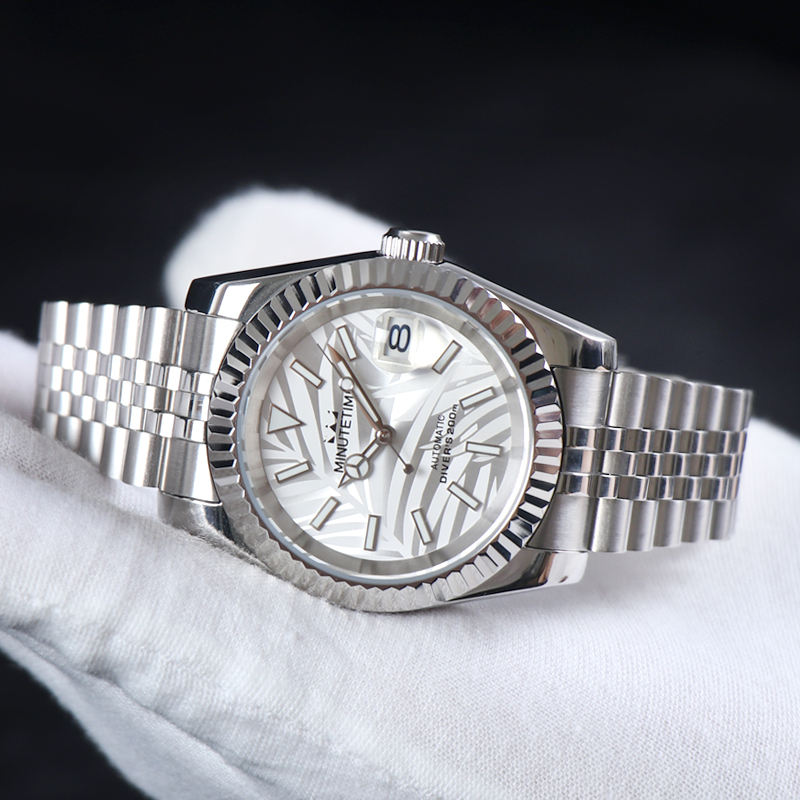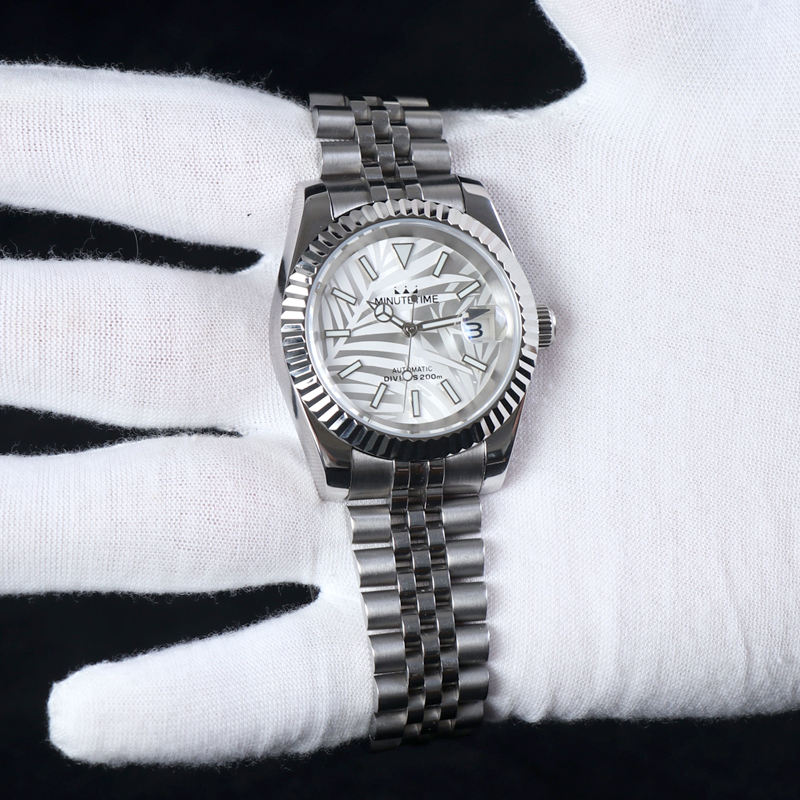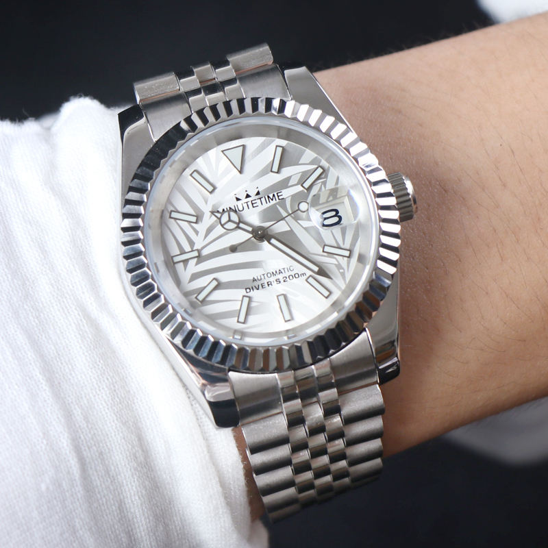 Montre mécanique personnalisée MINUTETIME NH35, mouvement automatique, cadran à motif de feuilles de luxe, montre étanche pour homme