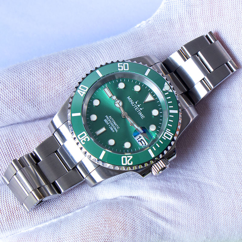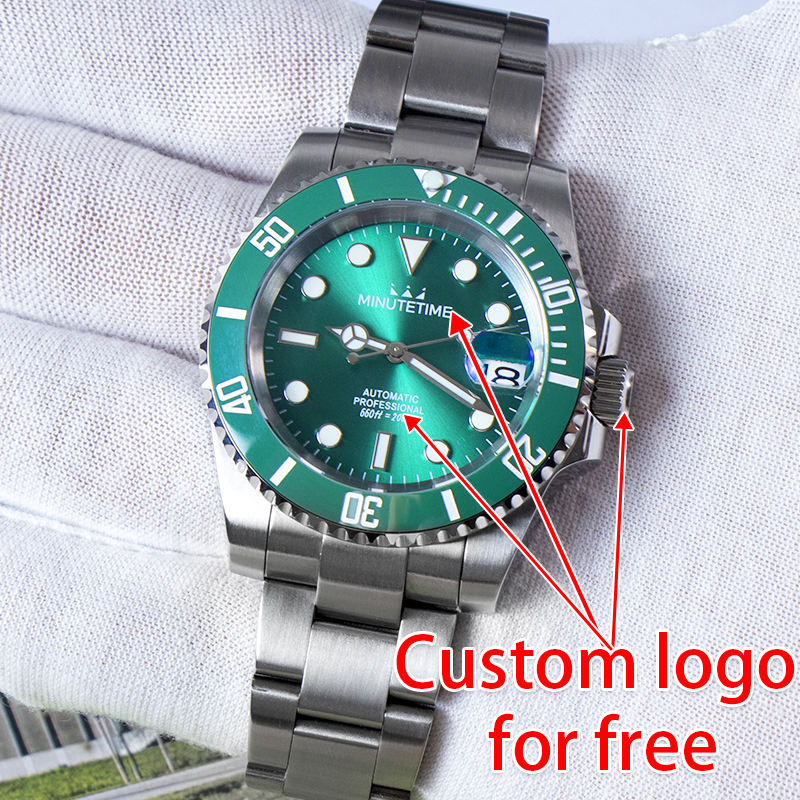Montres mécaniques personnalisées MINUTETIME DIY NH35 pour HOMMES, cadran vert de luxe, bracelet en acier, mouvement automatique, étanche 10 BAR