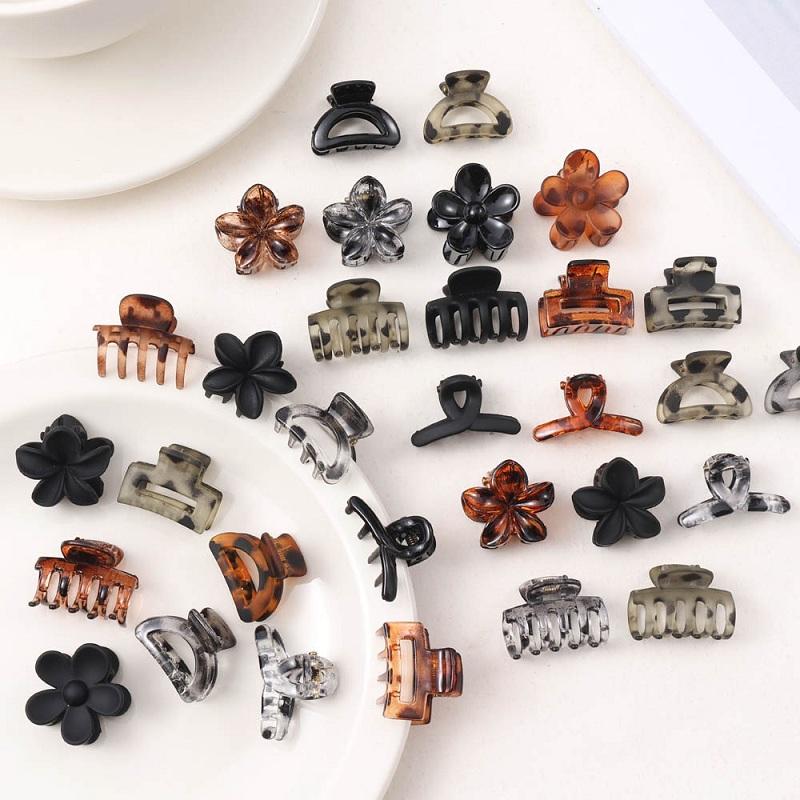 MIO Mini pince à cheveux léopard 2,5/3 cm, couleur ambre, fleur, rectangle, pinces à cheveux latérales, décontractées, pas chères, pinces à cheveux requin