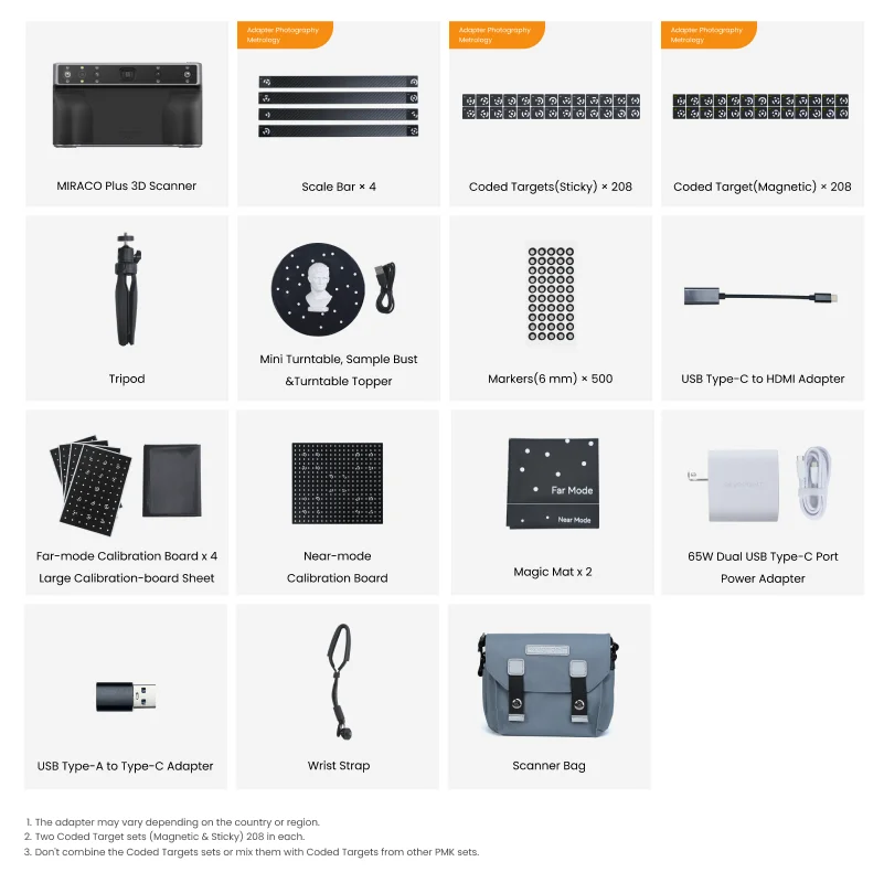 Scanner 3D portable MIRACO Plus REVOPOINT, kit de métrologie photogrammétrique, précision de 0,02 mm, matériau ABS, multi-OS USB/WiFi