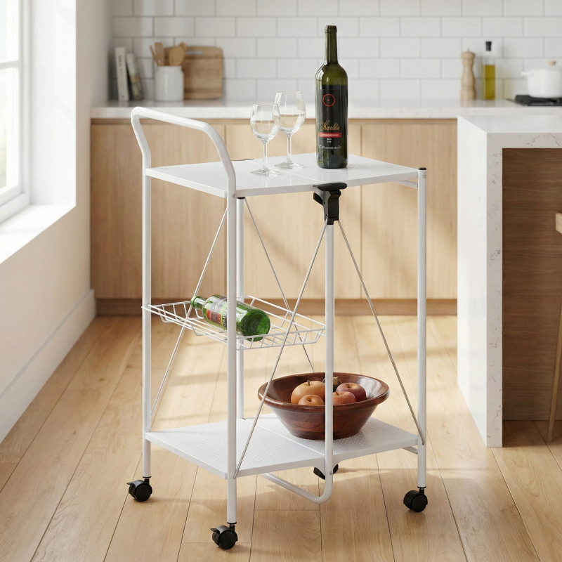 Chariot de cuisine pliable multifonctionnel à quatre roues en acier MIT Housewares pour le rangement domestique, mobilier OEM