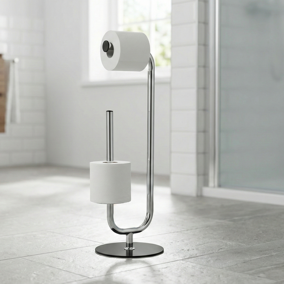 Porte-papier toilette en métal chromé moderne MIT avec support en tube, sans perçage requis pour une utilisation en salle de bain, fabriqué à Taïwan