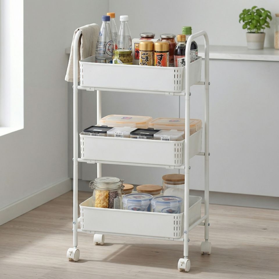 Chariot de cuisine mobile à 3 niveaux en métal MIT OEM, design moderne, pour rangement domestique, îlots de cuisine
