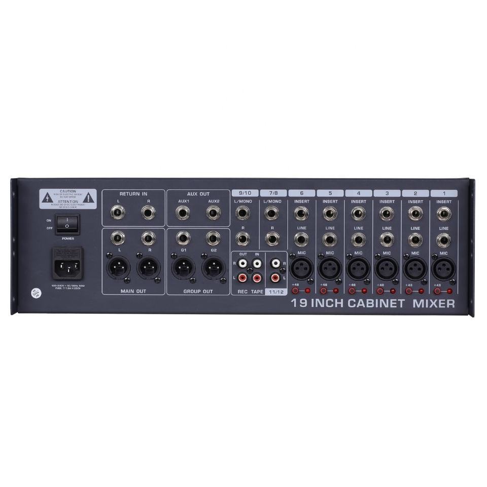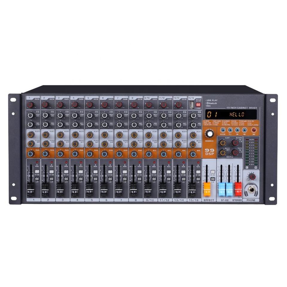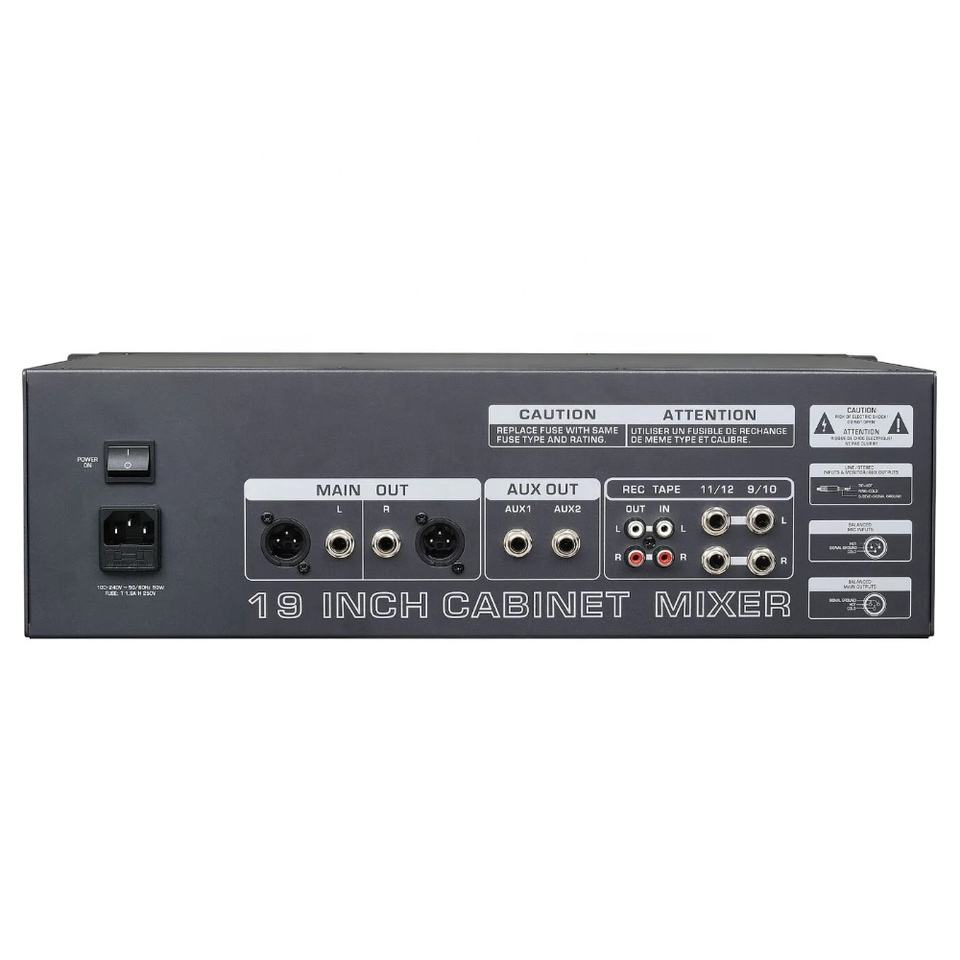 MJ-1204 99 effets sonores 12 canaux 3U Console de mixage audio de scène en métal à montage en rack avec préamplificateur de microphone