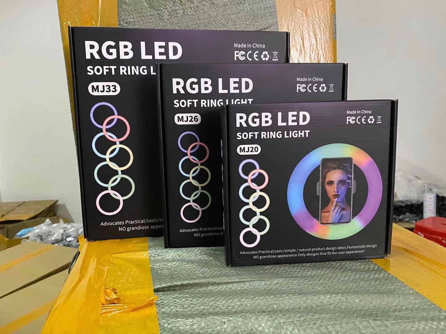 MJ33 Anneau lumineux RGB de 13 pouces pour la beauté, la vidéo, le studio photo, le selfie, lampe annulaire RGB LED avec trépied et télécommande