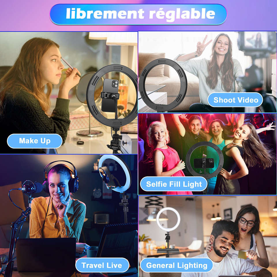 MJ33-6 RGB Fill Colorful Live Beauty Ring Light 14 pouces LED Fill Ring Light avec trépied Éclairage photographique en vente
