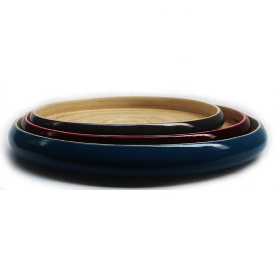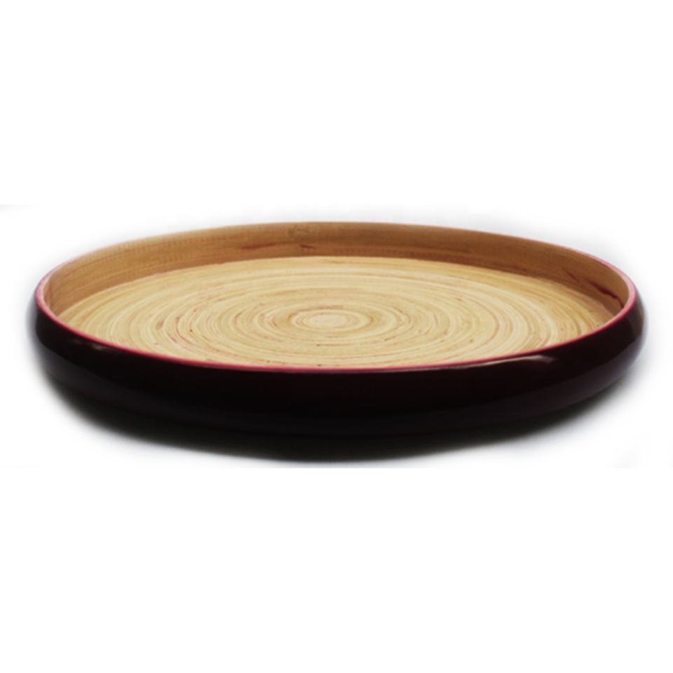 Plateau de service en bambou laqué écologique MK_BAMBOO avec bord large, assiette en bambou tissé, couleur et logo personnalisables