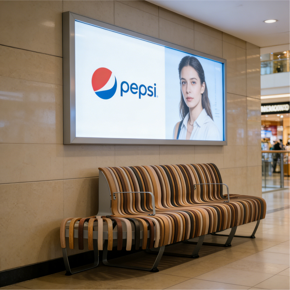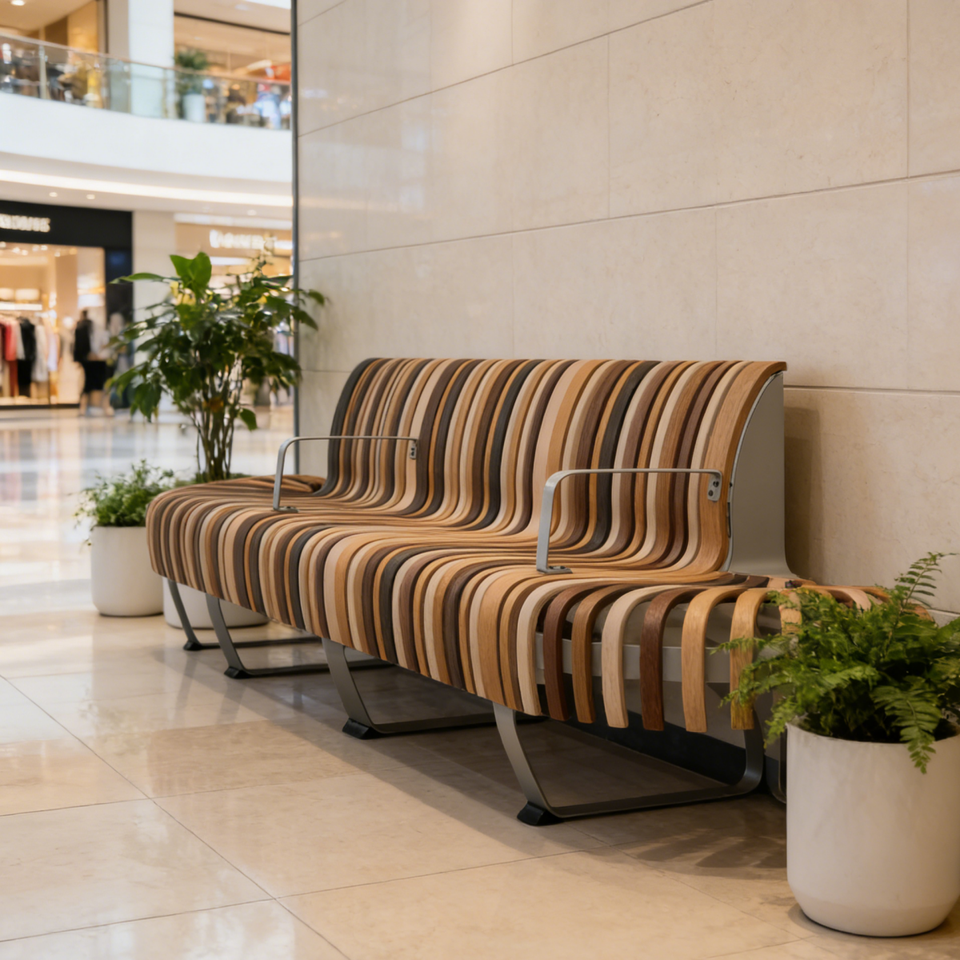 Banc de jardin incurvé en acier pour centre commercial