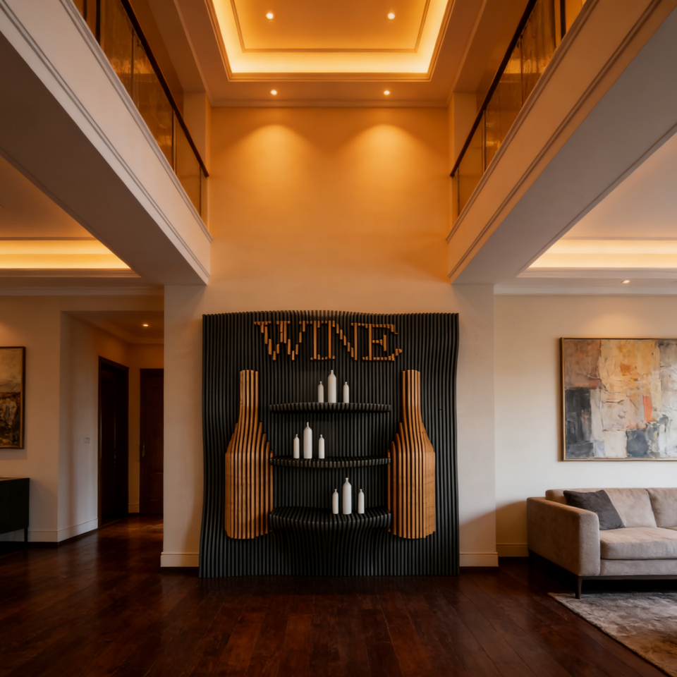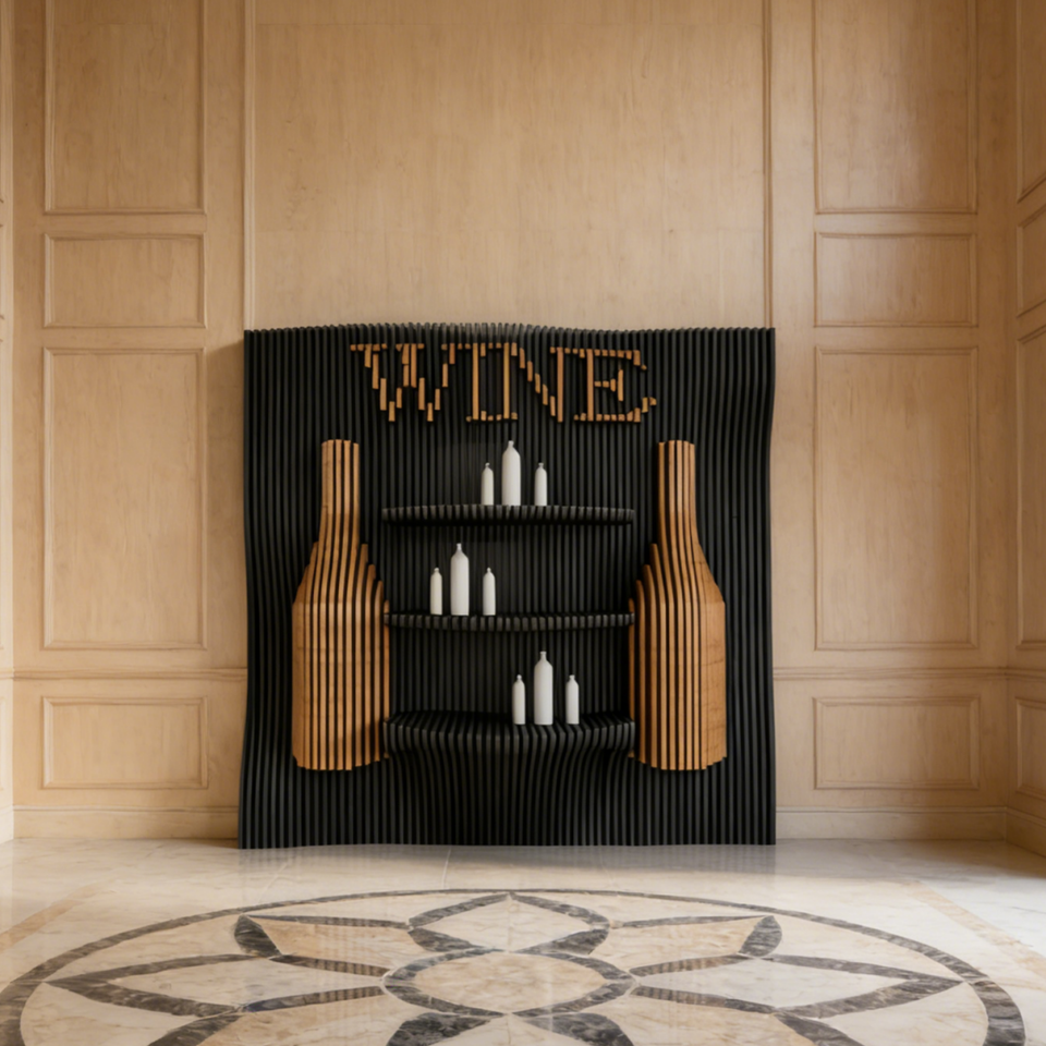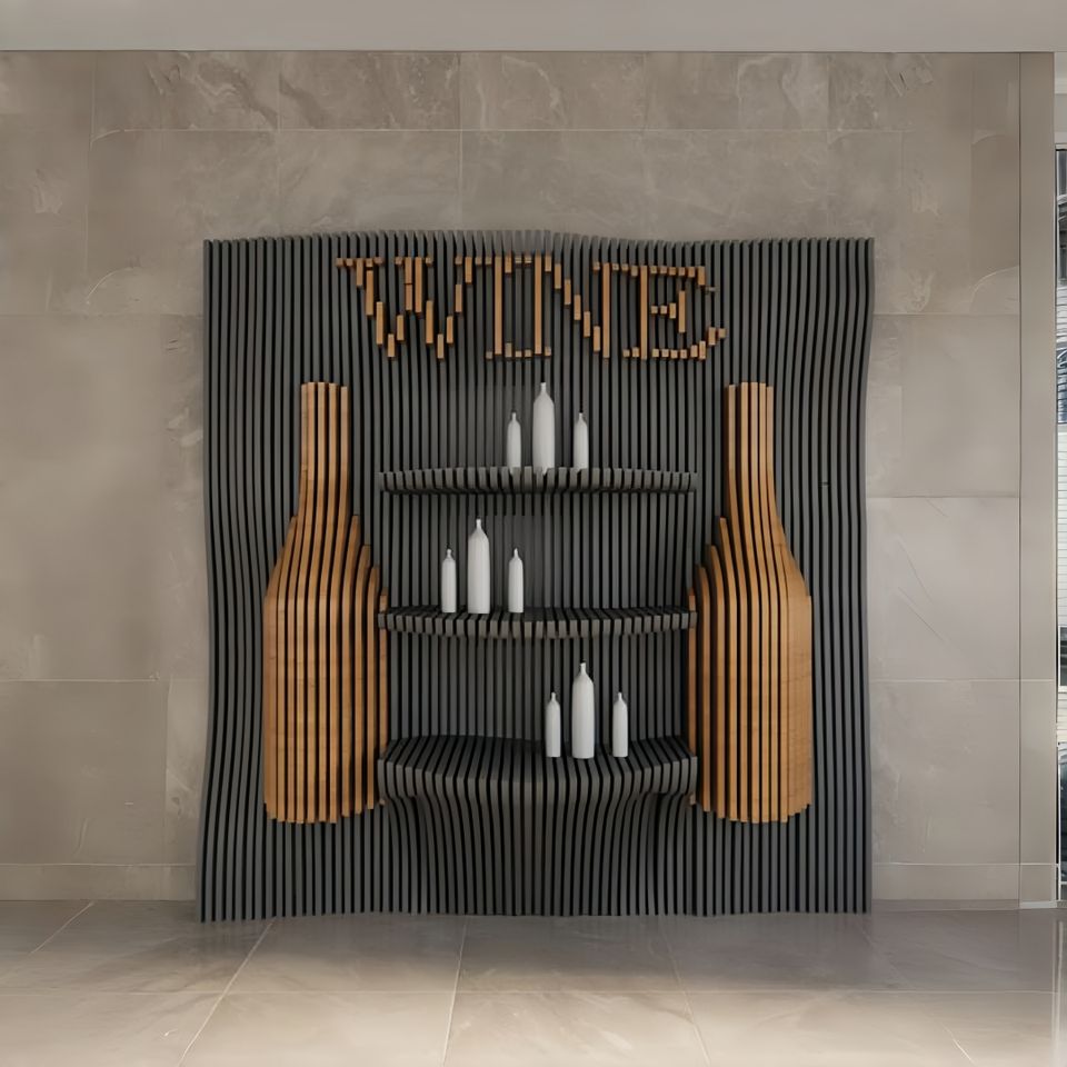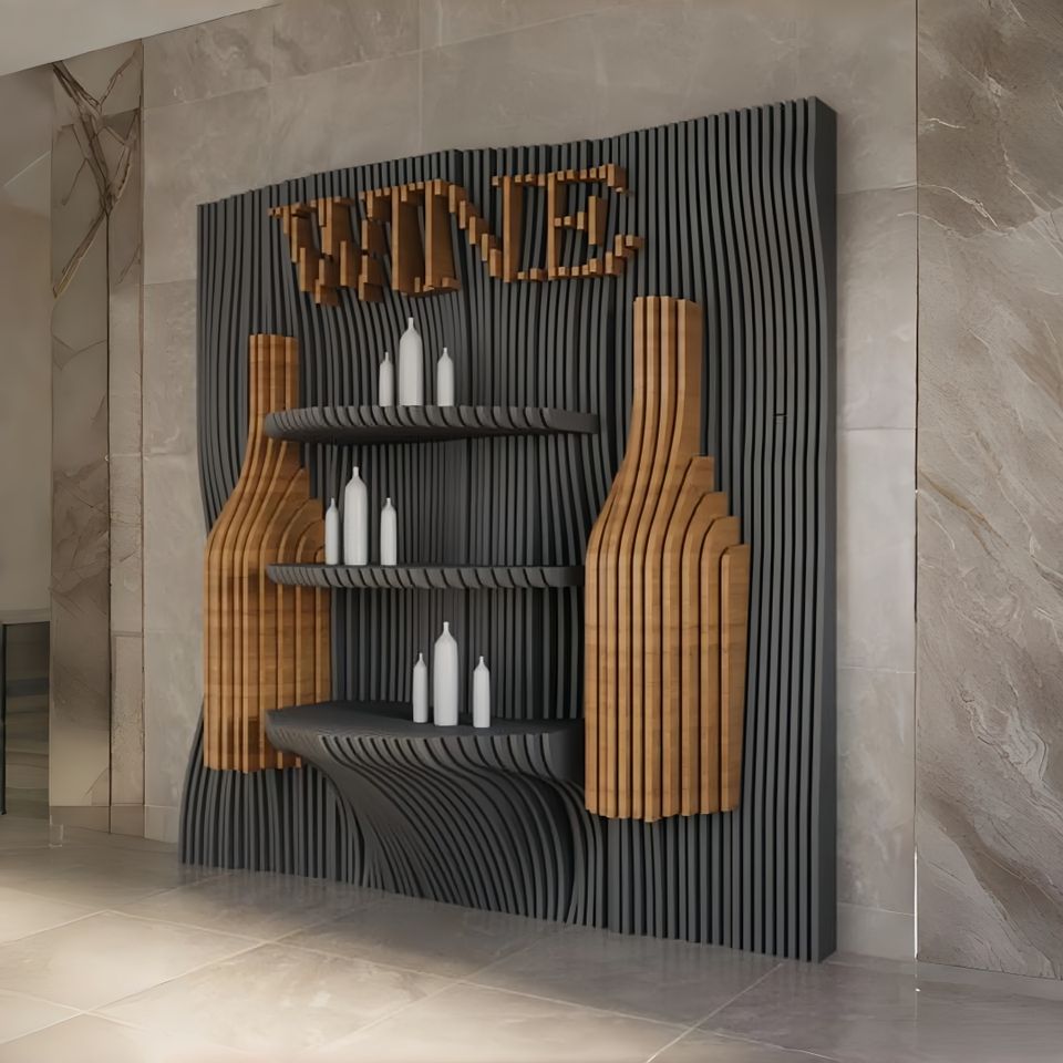 Wooden Display and Storage Shelf Wine Bottle Pattern Decor