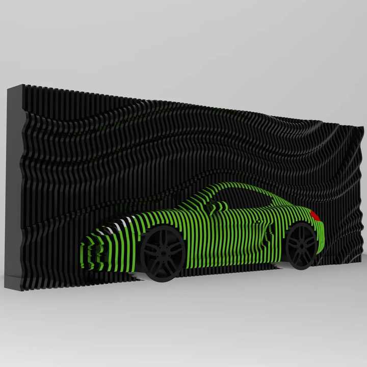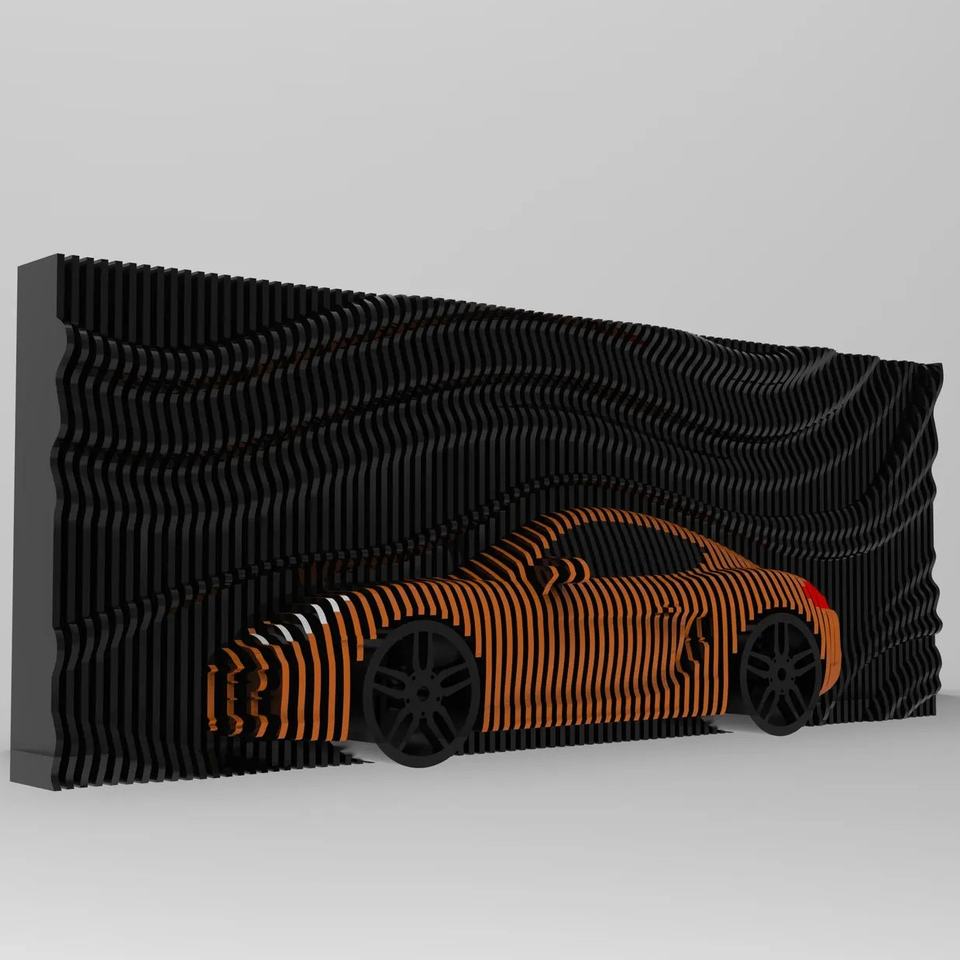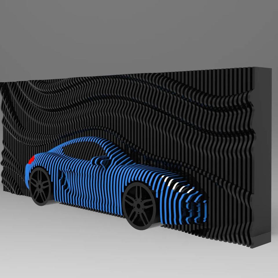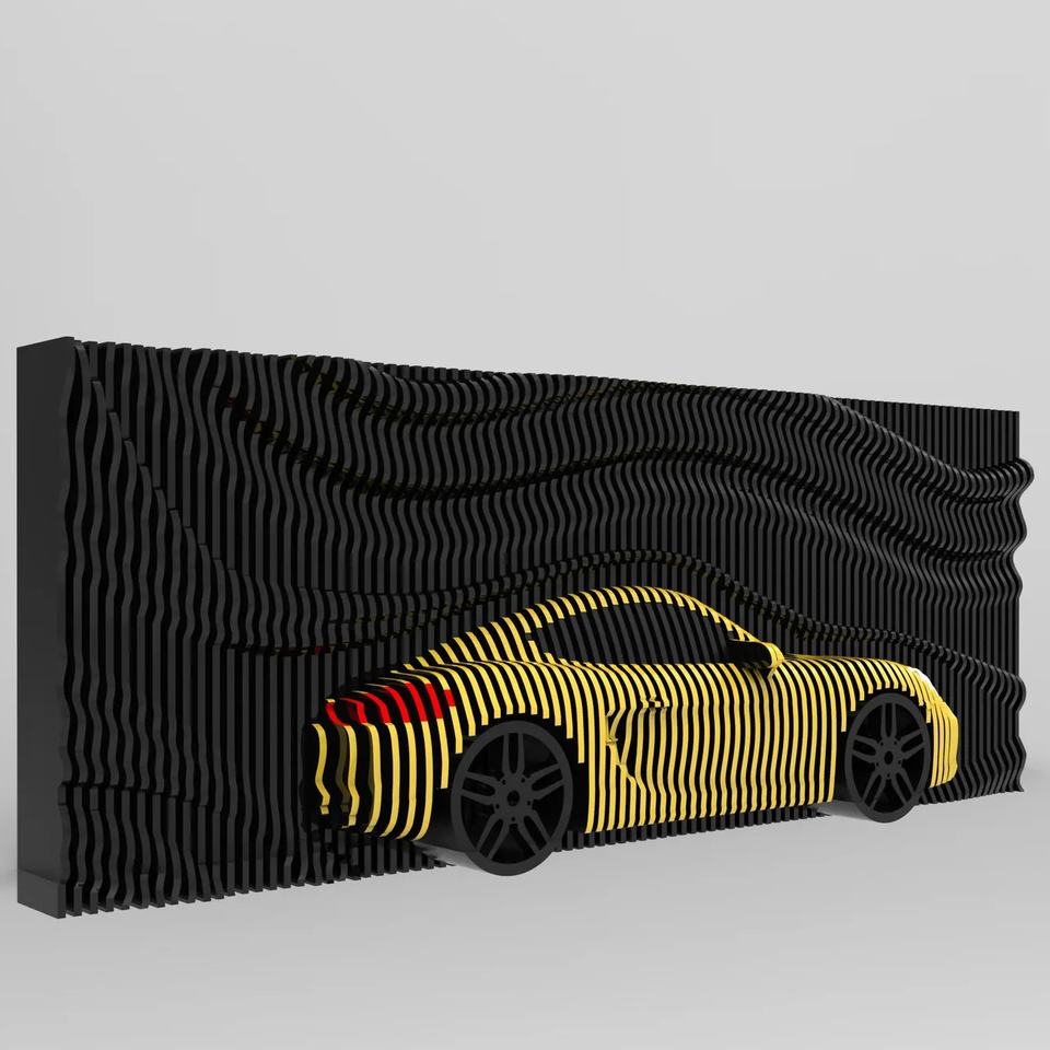 Décoration murale paramétrique en bois sur le thème des véhicules