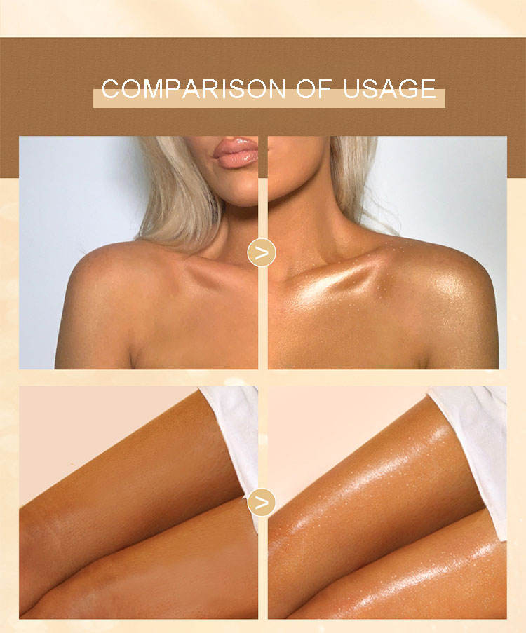 MLM Huile Scintillante Corporelle Bio Écologique Imperméable Longue Durée Effet Bronzer et Lumière Naturelle Personnalisable Marque Privée