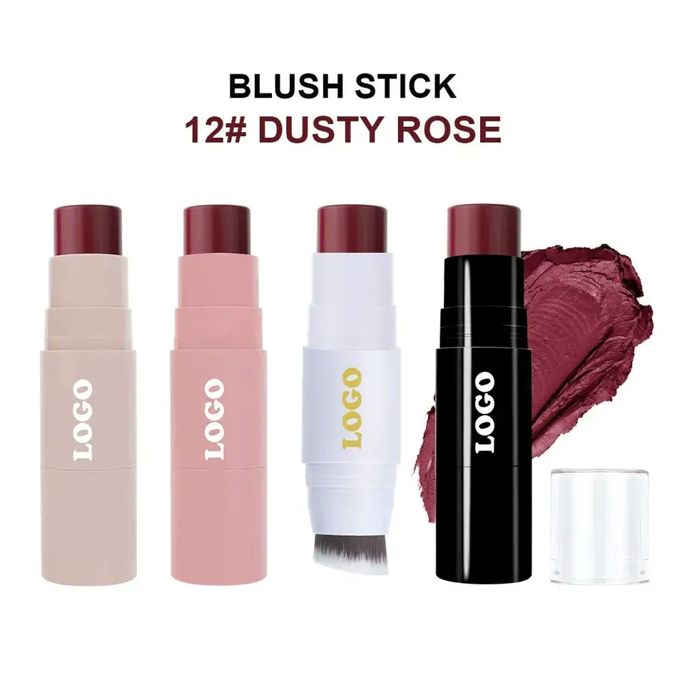 Stick de blush double tête avec logo privé MLM, waterproof, longue tenue, fini scintillant pour le visage