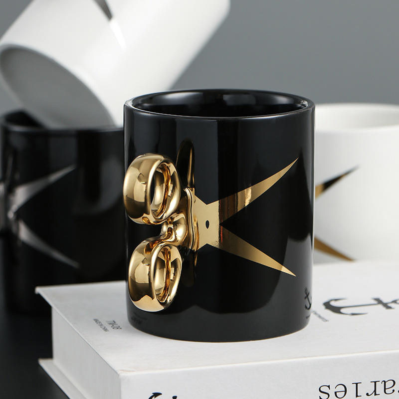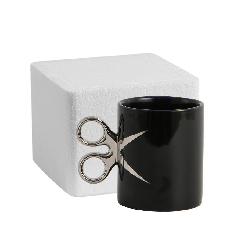MM Creative Ciseaux Poignée Tasse à café en céramique Porcelaine Impression personnalisée Cadeau amusant Tasse pour les barbiers Couvercle Voyage Utilisation de l'eau