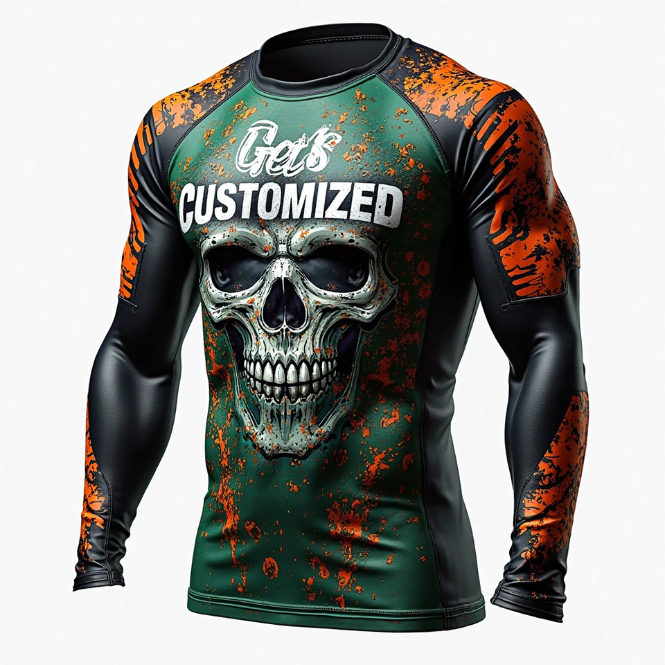 MMA Rash Guard personnalisé construit pour durer dans l'utilisation quotidienne avec extensible respirant et tissu sublimé kimono de jiu jitsu