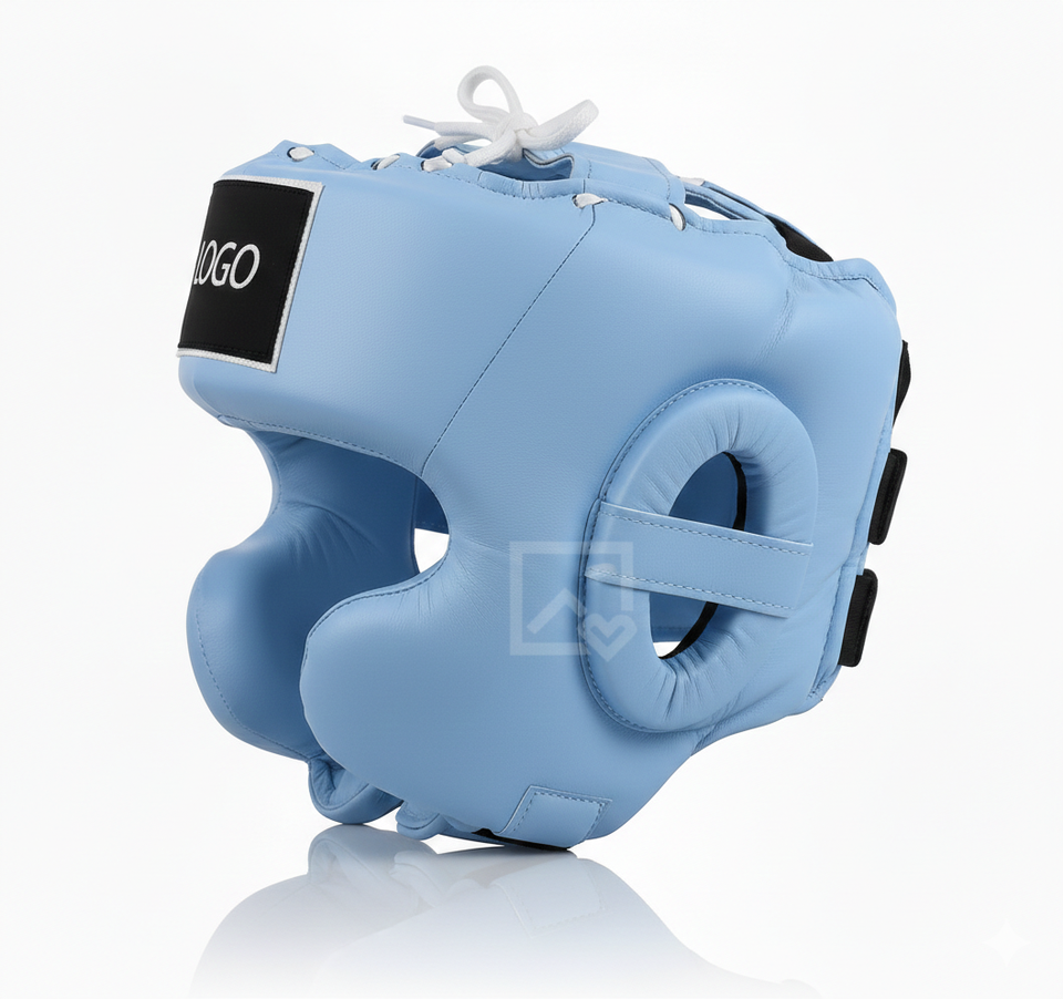 Casque d'entraînement en cuir de vachette personnalisé MMA OEM avec motif sur le visage, pour le kickboxing, le karaté, le taekwondo, la boxe, équipement de protection