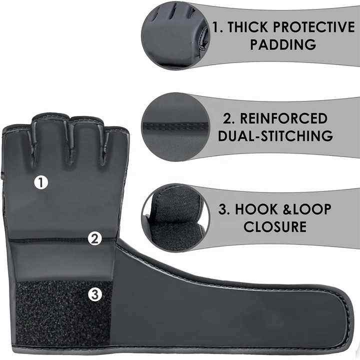 MMA poinçonnage Kick gants de boxe Sparring engrenages d'entraînement meilleure qualité MMA gants demi doigt boxe gants de combat en cuir PU