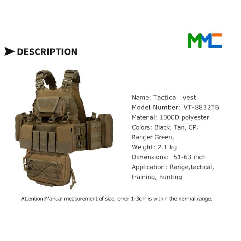 Sac à dos tactique MMC VT-8832TB en polyester, équipement de protection multifonctionnel, sangle de poitrine, logo personnalisé, extérieur, fabriqué en Chine, unisexe
