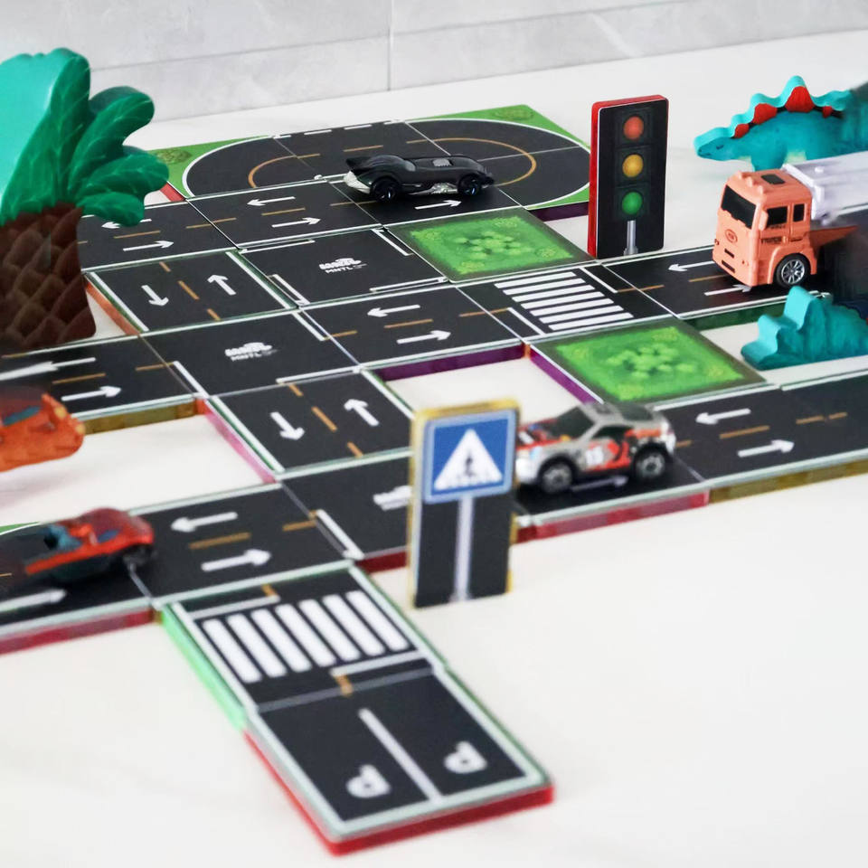 MNTL Enfants Creative Building Magnet Tile Construction Fun Toys 46pcs Magnetic Tiles Road Railway Toppers with Traffic Sign