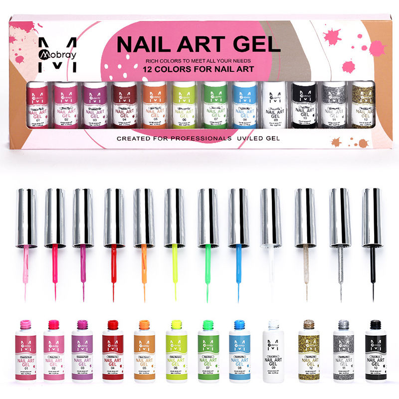 Ensemble de vernis à ongles en gel semi-durci peint MOBRAY - Ensemble de vernis à ongles en gel pour nail art - 12 couleurs - Vernis à ongles en gel à faire tremper - UV LED - Manucure française