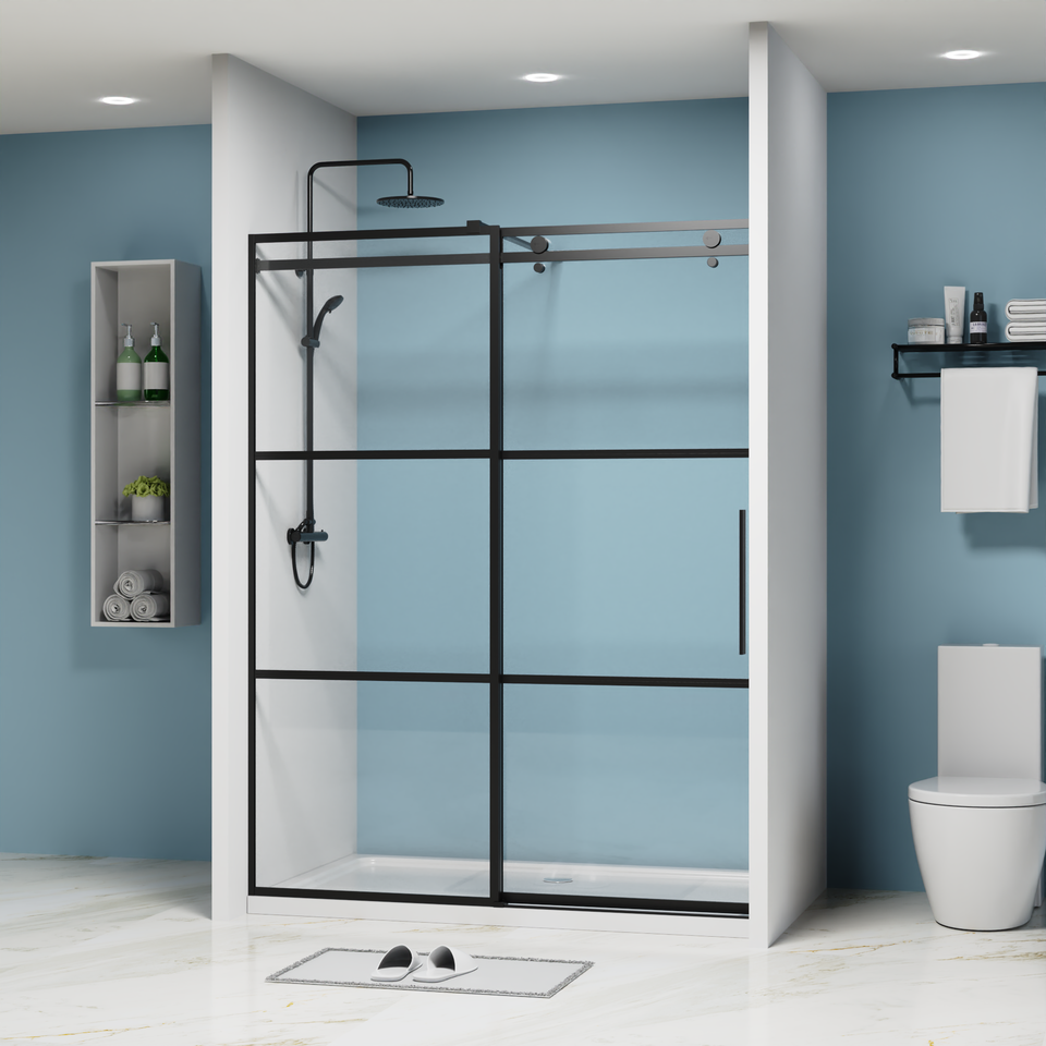 LE LUXE MODERNE RENCONTRE LA FONCTIONNALITÉ: ÉCRAN DE DOUCHE KD À CADRE NOIR AVEC ACCENTS EN LAITON